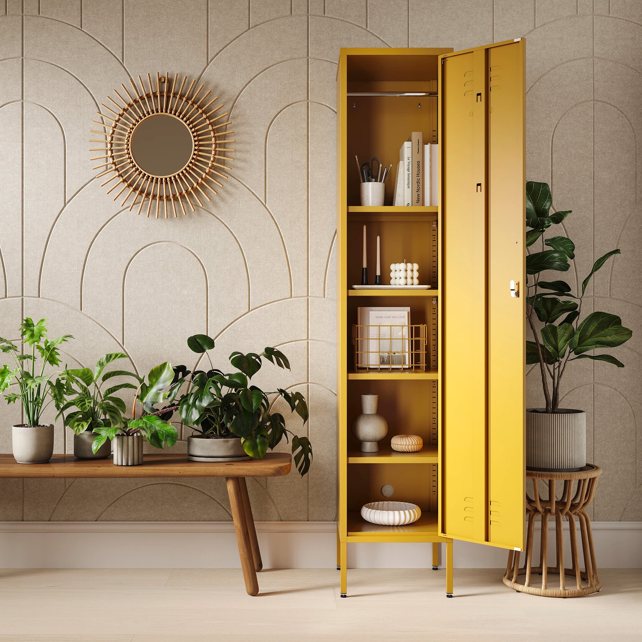 Sennep Bexley er en høj, slank opbevaringsskab bringer farve og stil til selv de mindste rum, og dets pæne design gør den til et godt valg til ethvert rum. Med sin magnetiske overflade og fuldt justerbare hylder er denne Sennepskab er perfekt til at tilføje et strejf af farve til soveværelser, gange eller andre steder, hvor du har brug for ekstra opbevaring. Den livlige sennepsfarvede finish giver et strejf af personlighed, samtidig med at den hjælper dig med at holde orden. Uanset om du opbevarer tøj, accessories eller daglige fornødenheder, er Mustard Bexley både dristig og praktisk. Derudover er den fyldt med ekstra funktioner såsom en magnetisk overflade, praktiske kroge, vægmonteringshuller og justerbare fødder.