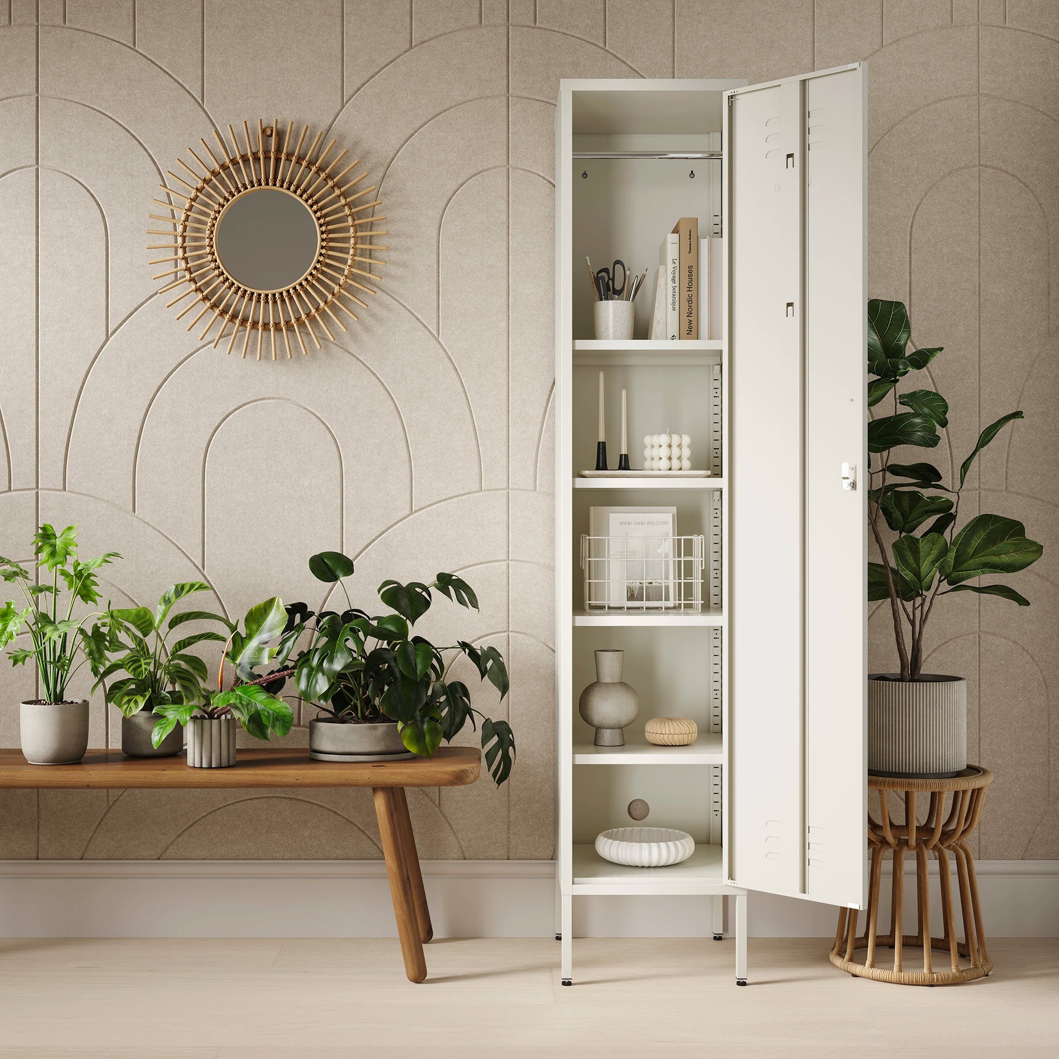 Få mest muligt ud af hver en centimeter plads med Vanilla Bexley; en høj, slank opbevaringsskab Designet til at tilføje et strejf af farve til selv de mindste rum. Med sin magnetiske overflade og fuldt justerbare hylder er dette Bexley-skab perfekt til at tilføje et strejf af farve til soveværelser, gange eller andre steder, hvor du har brug for ekstra opbevaring. Vanilla-finishen giver et strejf af personlighed, samtidig med at det hjælper dig med at holde orden. Uanset om du opbevarer bøger, tilbehør eller daglige fornødenheder, er Vanilla Bexley både smuk og praktisk. Derudover er den fyldt med ekstra funktioner såsom en magnetisk overflade, praktiske kroge, vægmonteringshuller og justerbare fødder.