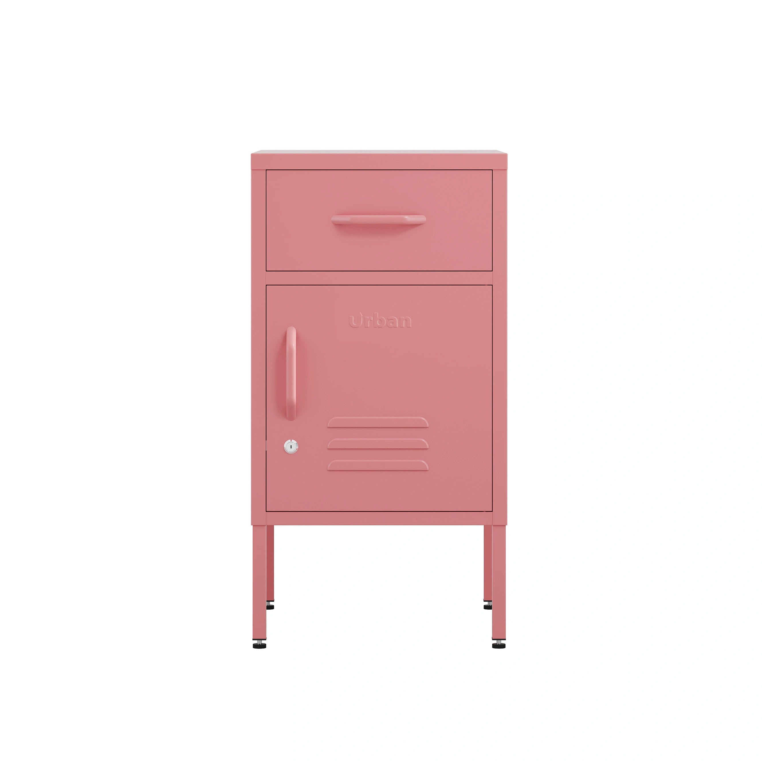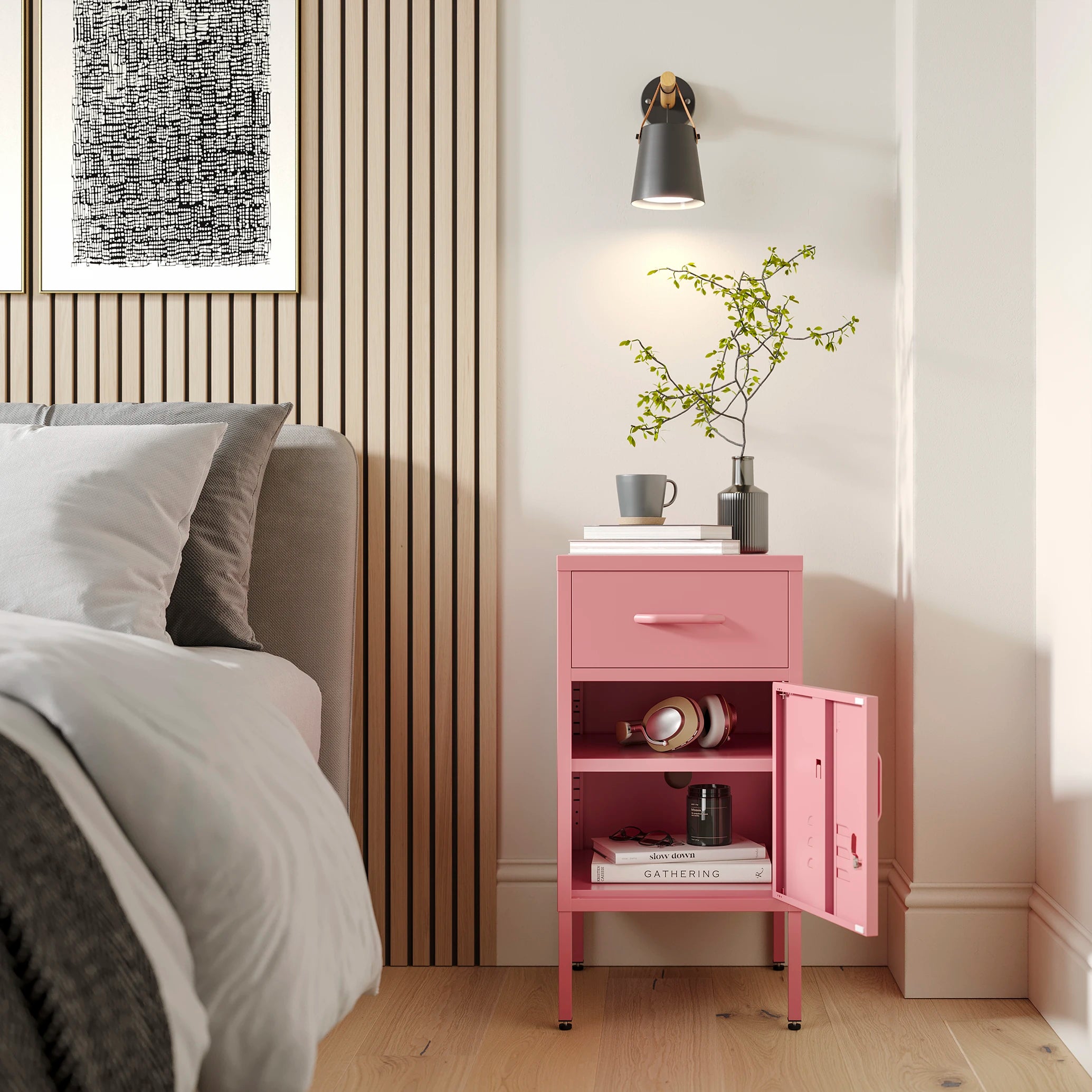 - Metal sidebord med enkeltdør, pulverlakeret i Flamingo