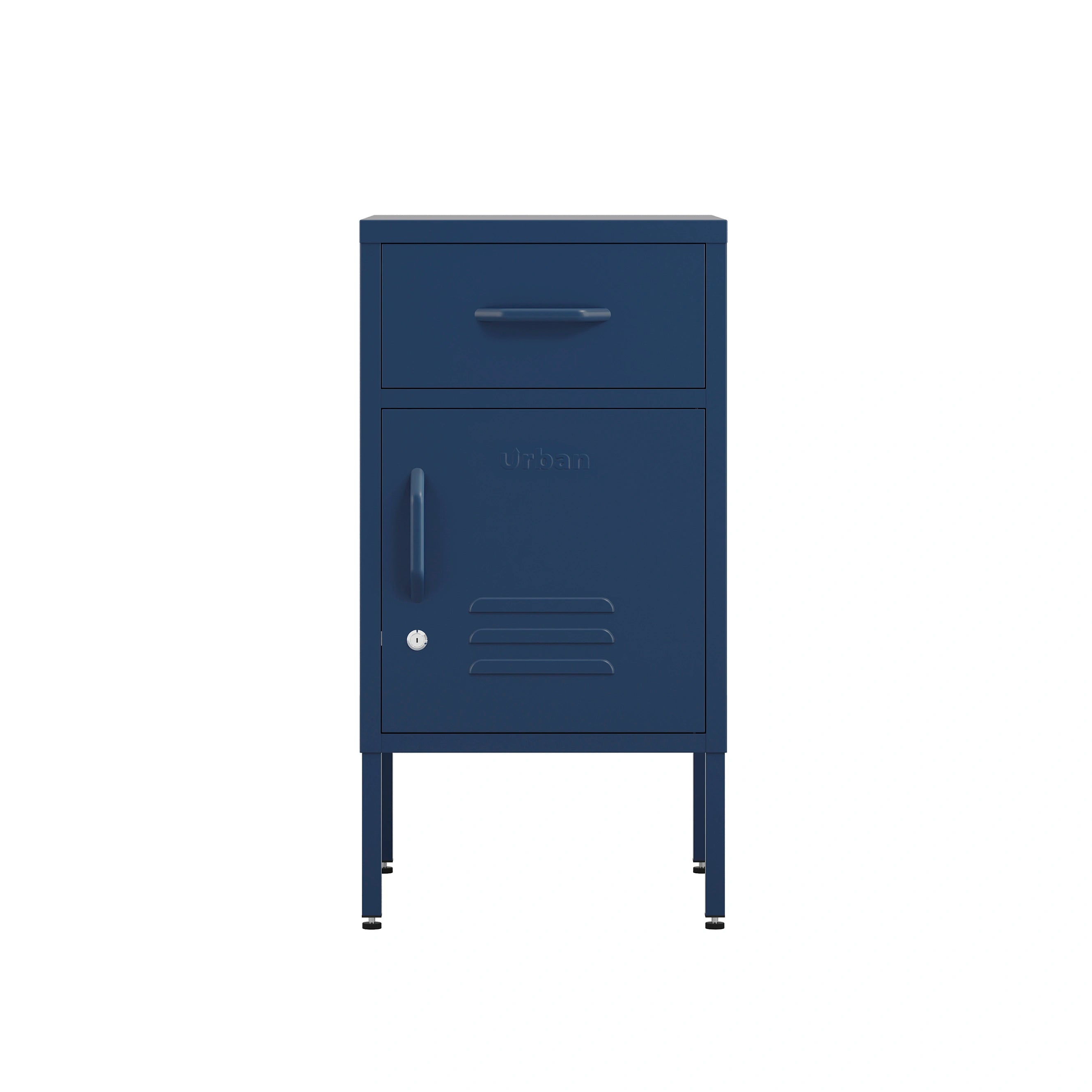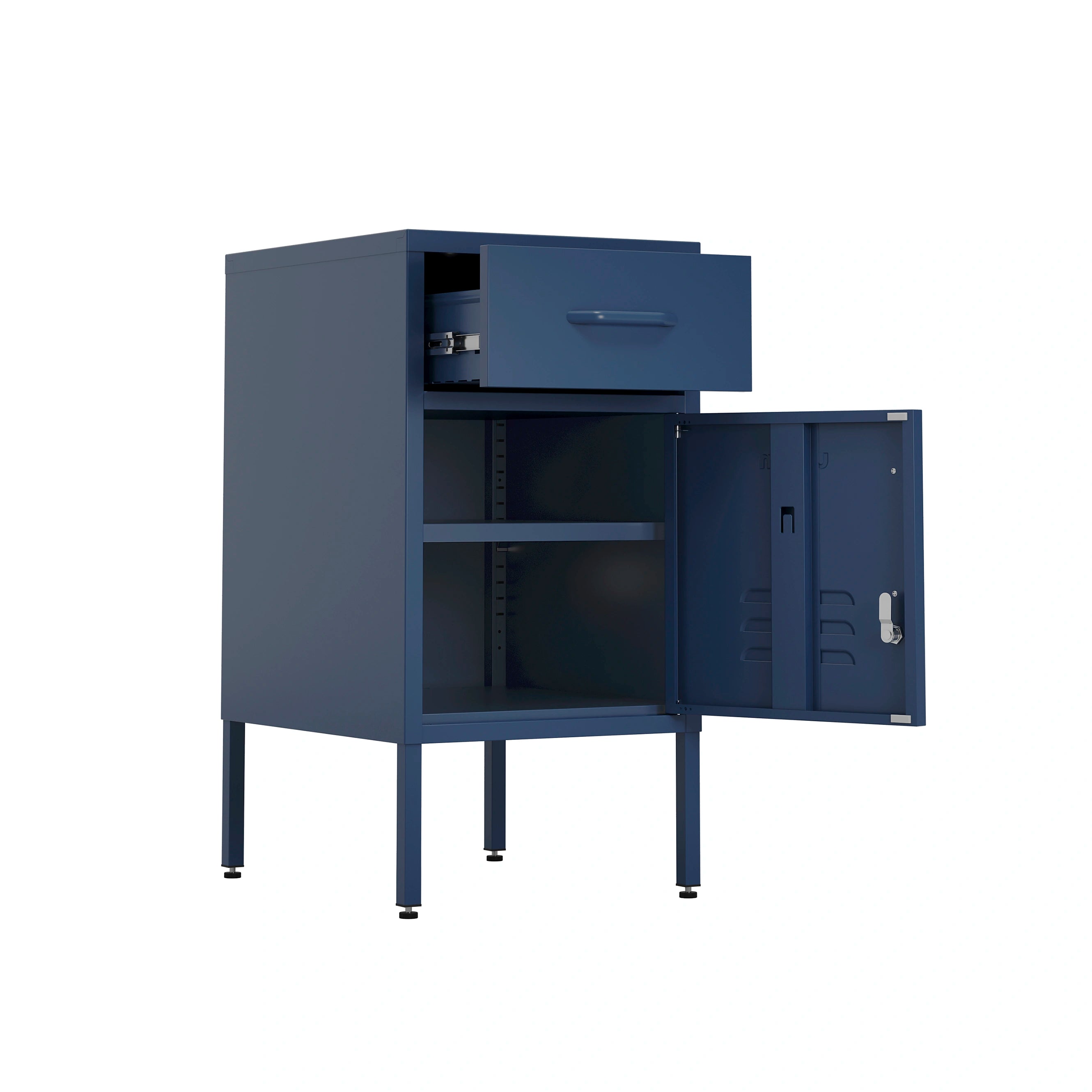 - Metal sidebord med enkeltdør, pulverlakeret i marineblå