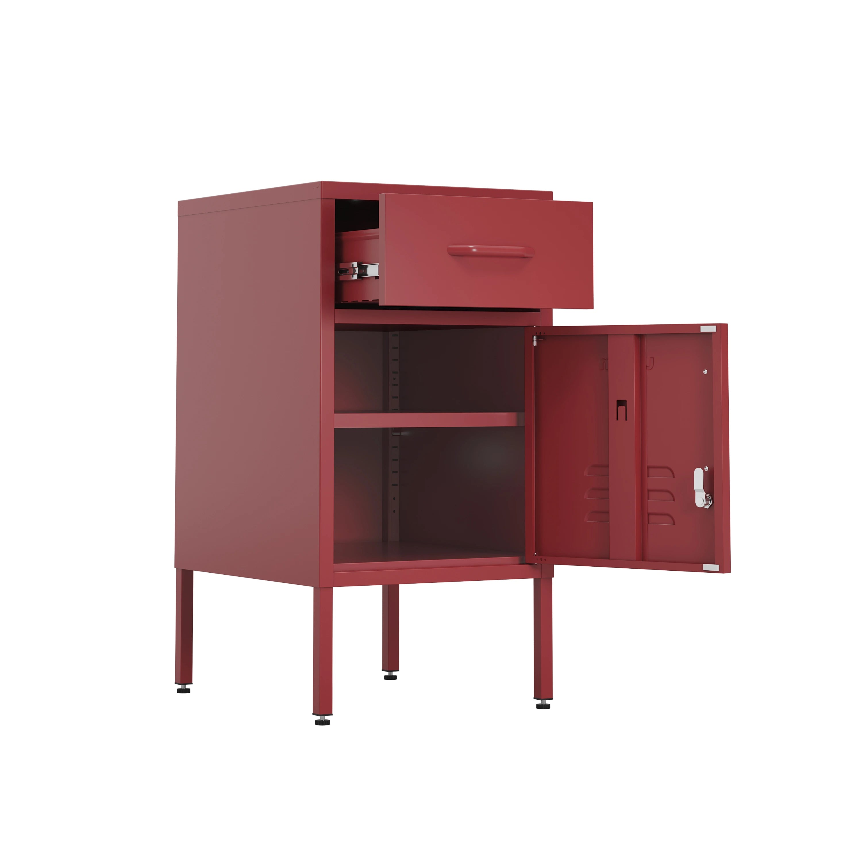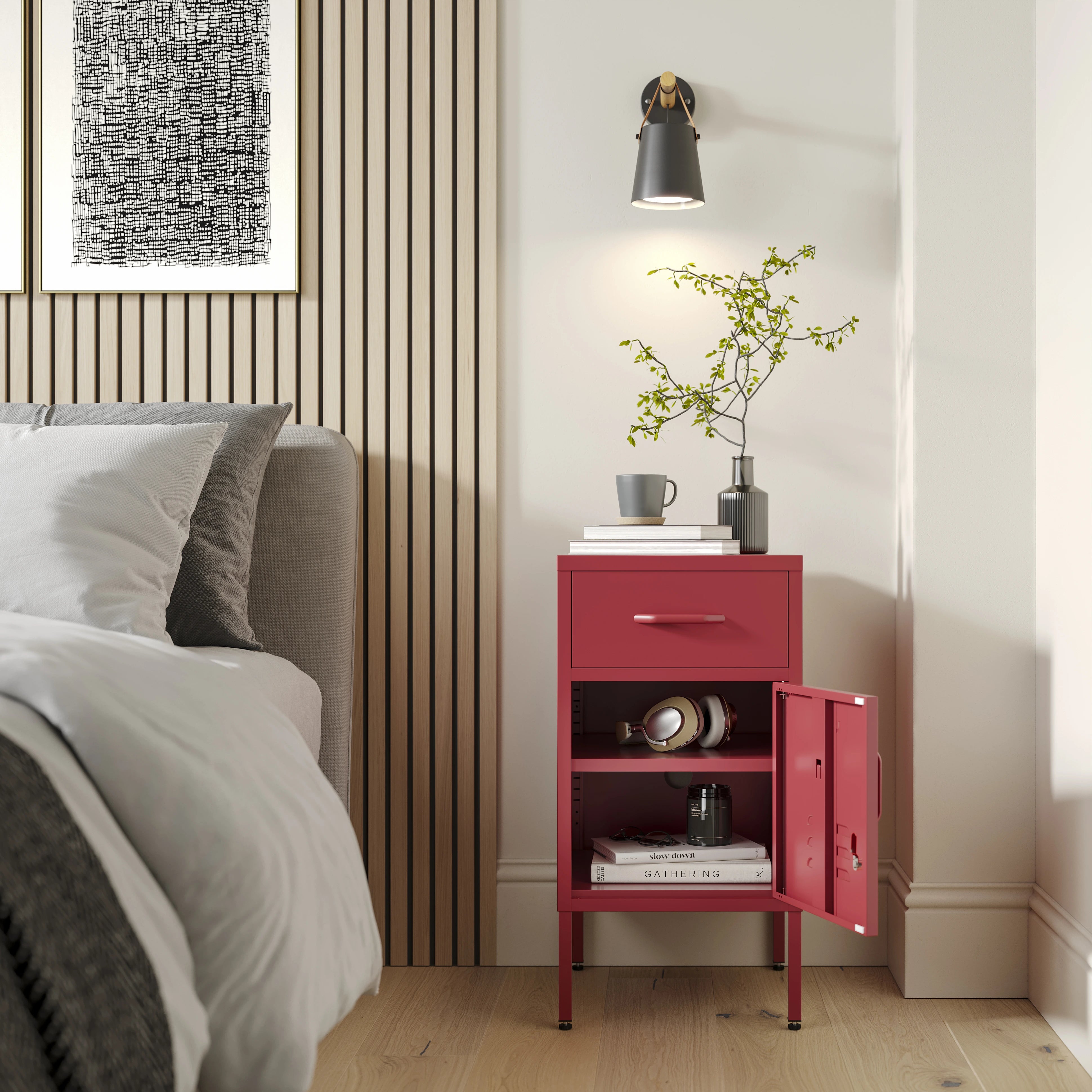 - Metal sidebord med enkelt dør, pulverlakeret i rød