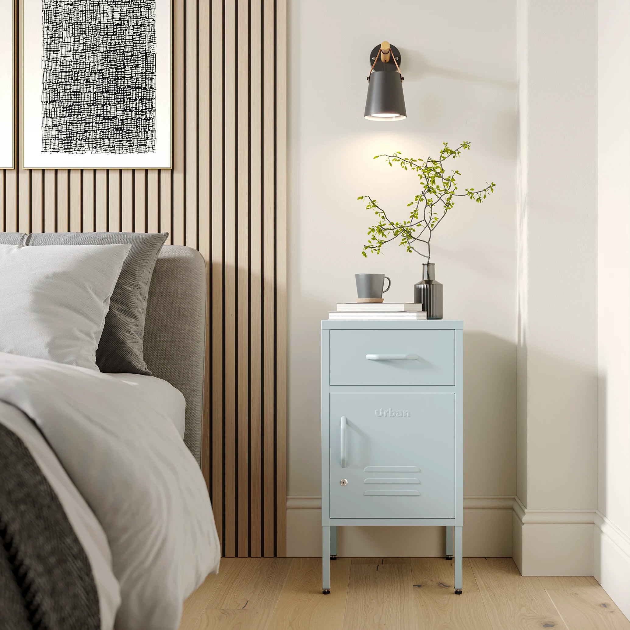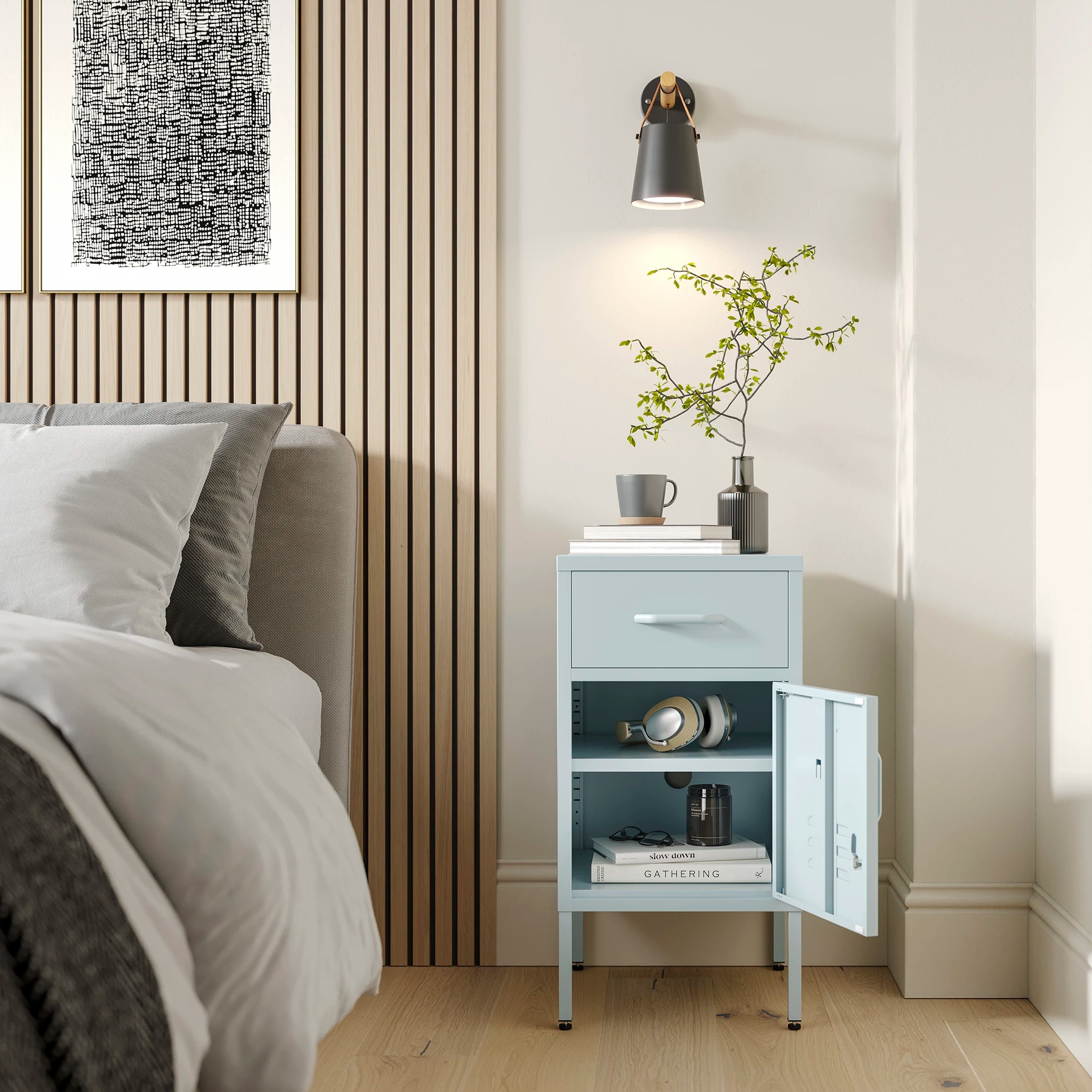 - Metal sidebord med enkeltdør, pulverlakeret i himmelblå