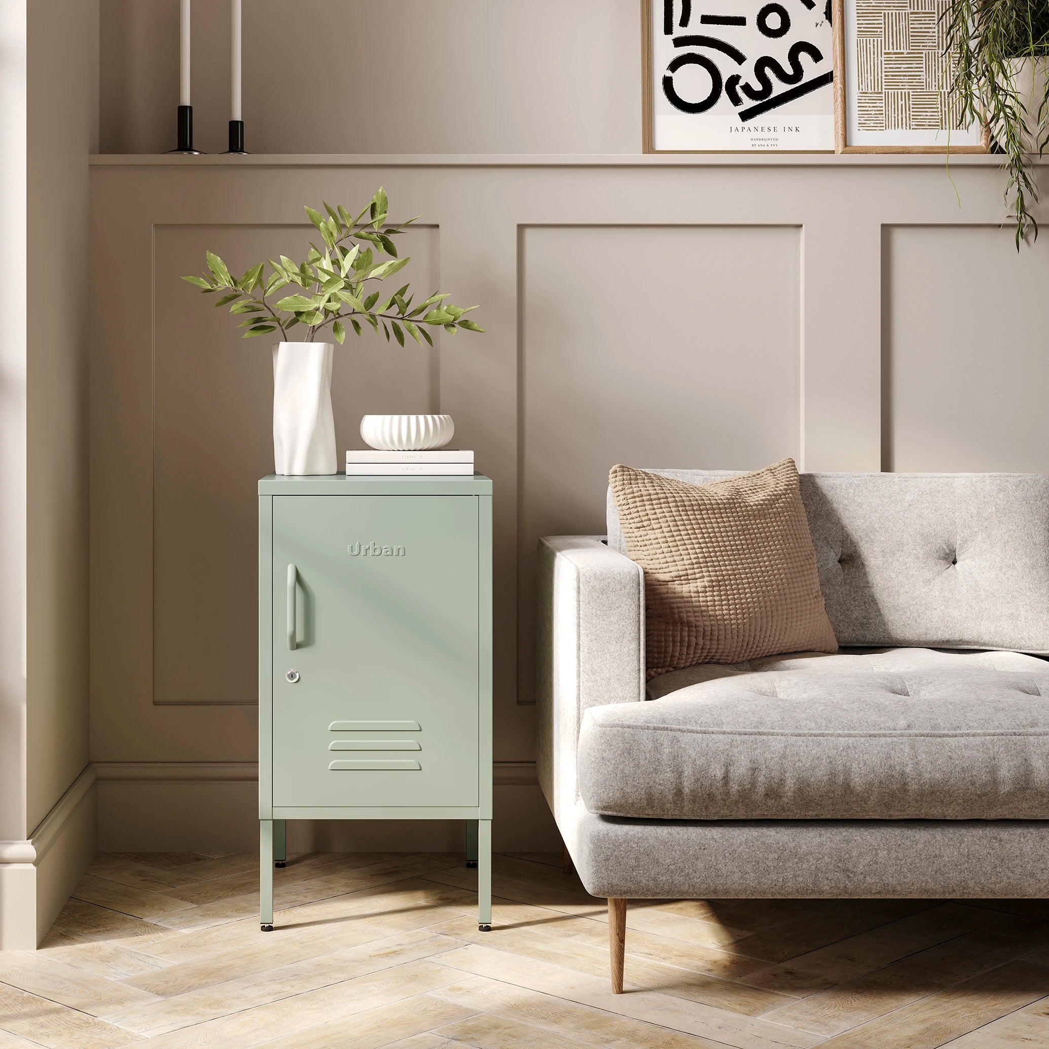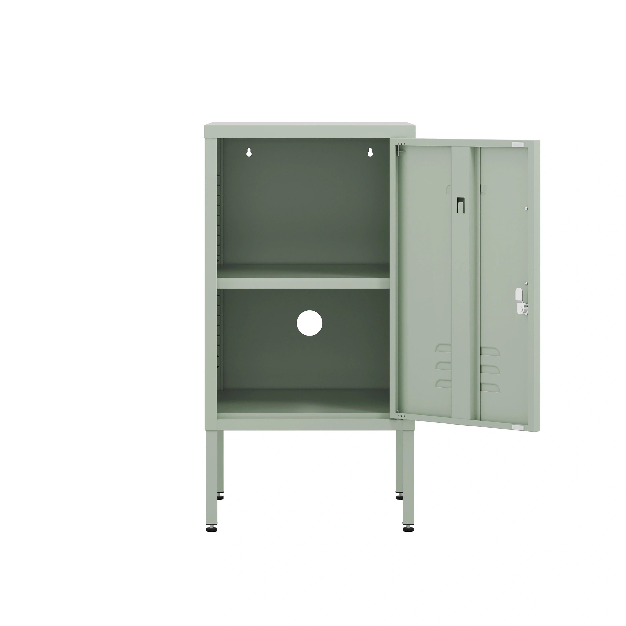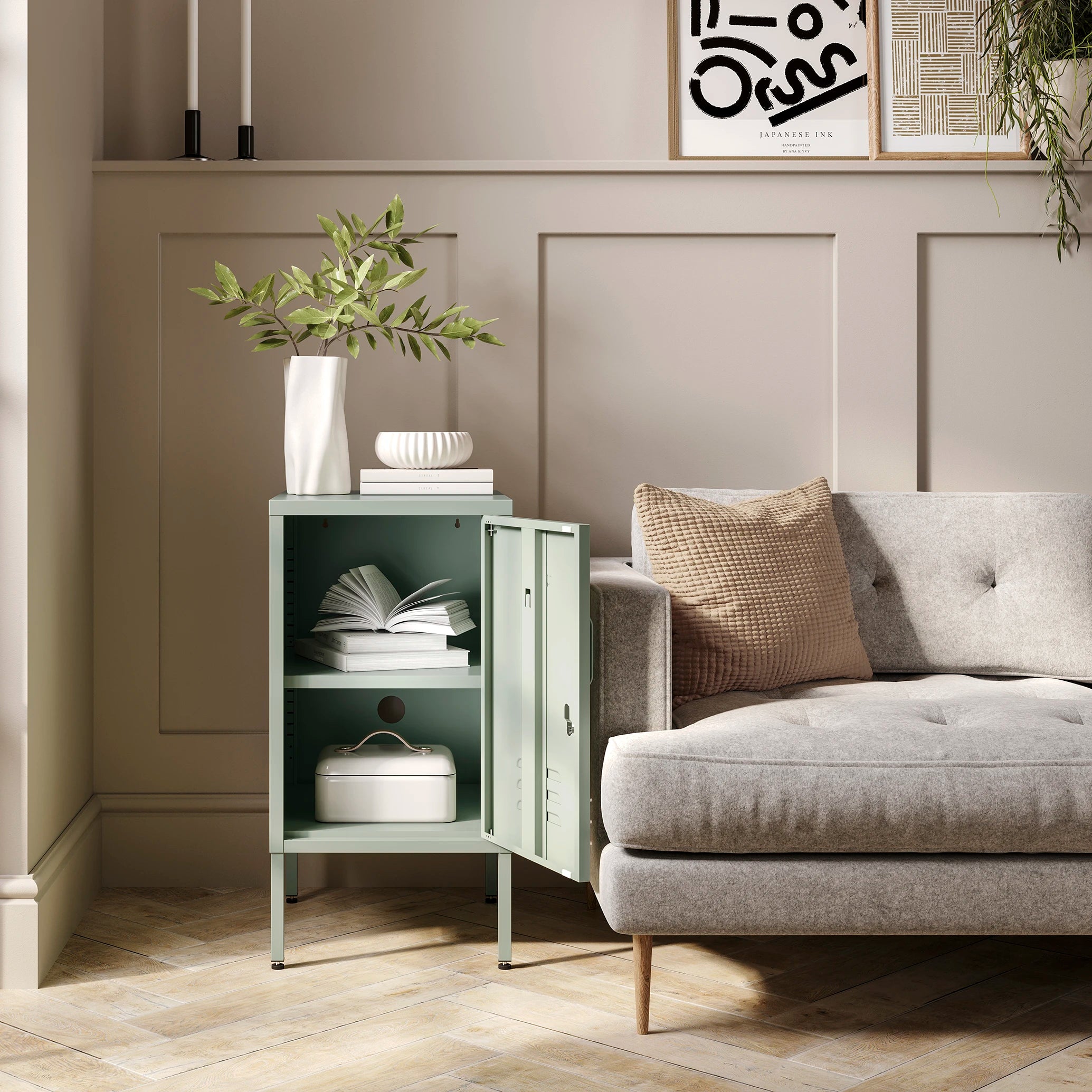 - Metal sidebord med enkeltdør, pulverlakeret i salvie