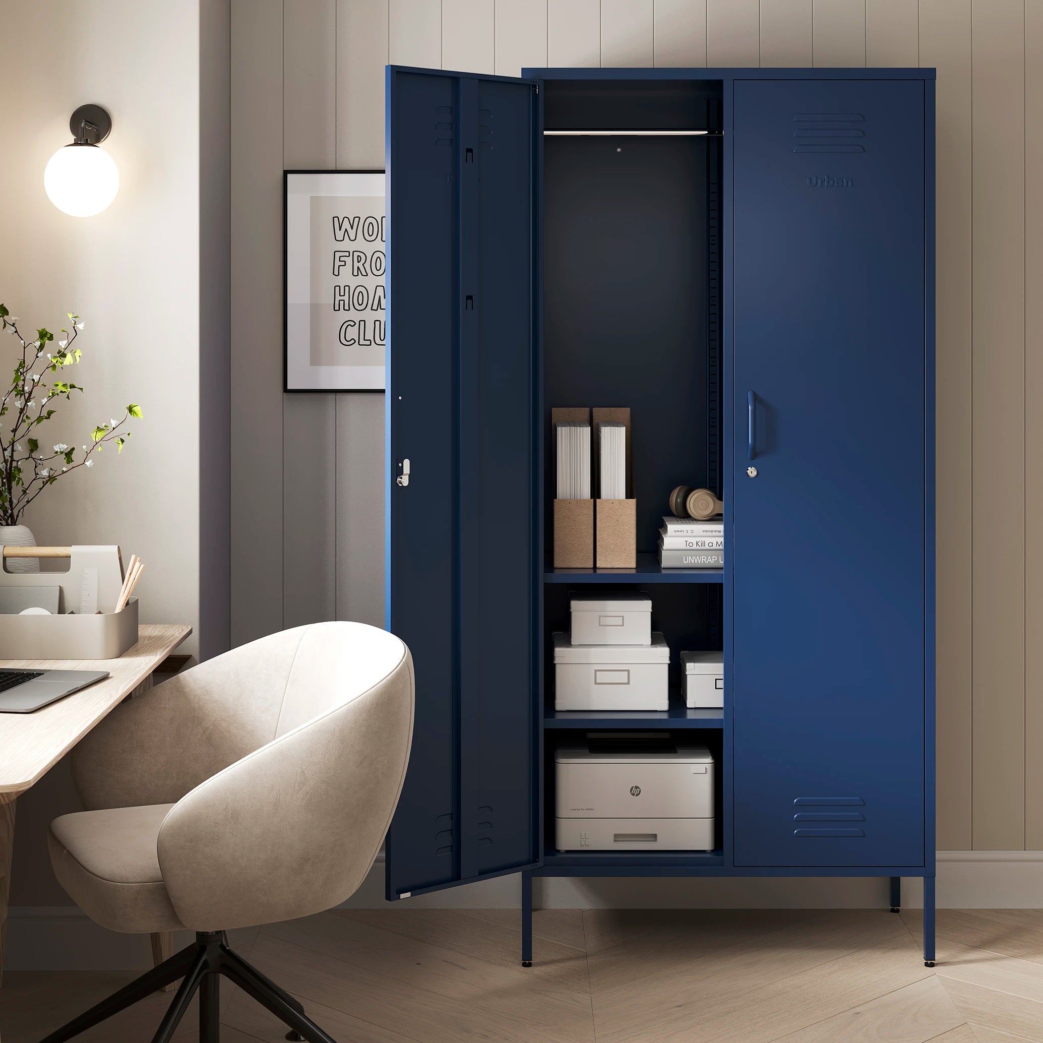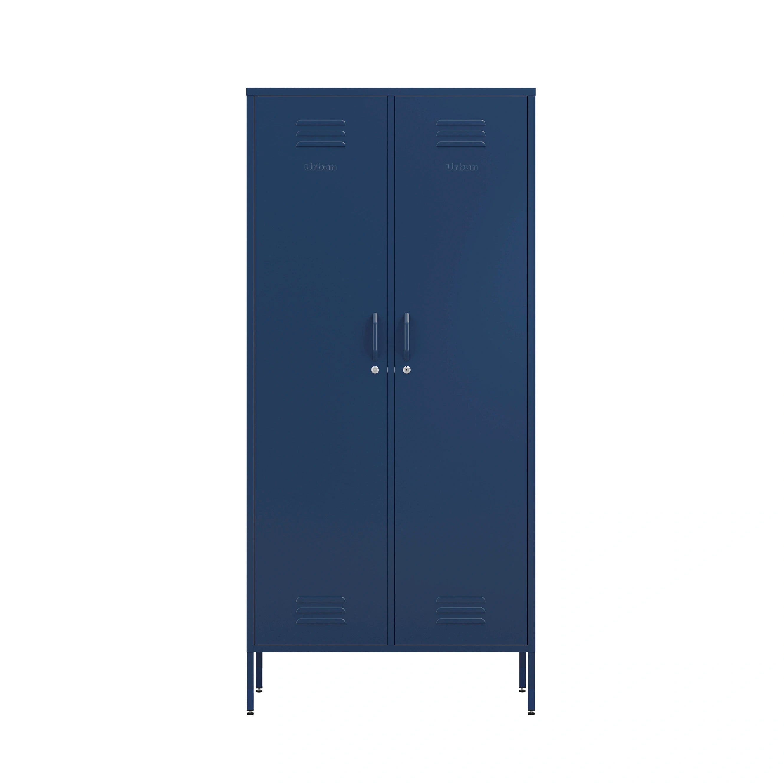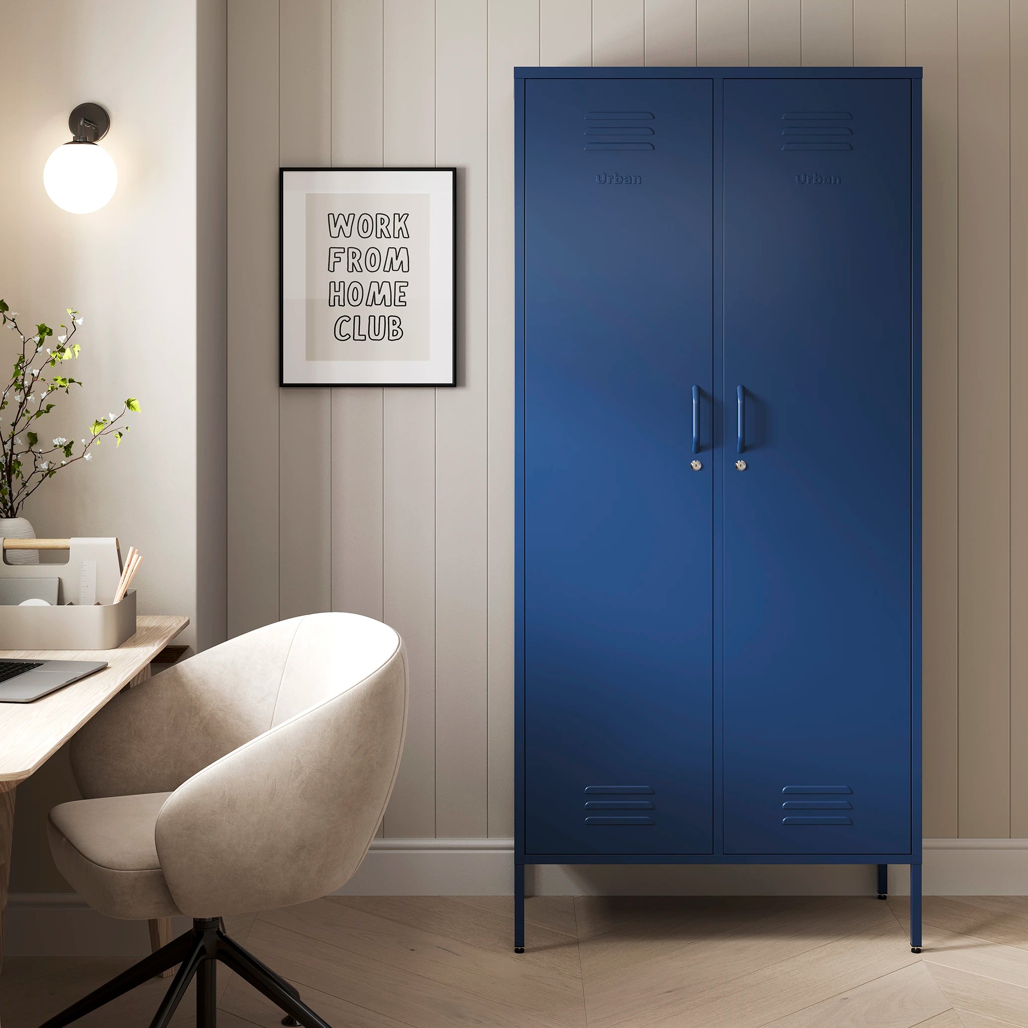 - Metal garderobe med dobbeltdør, pulverlakeret i marineblå