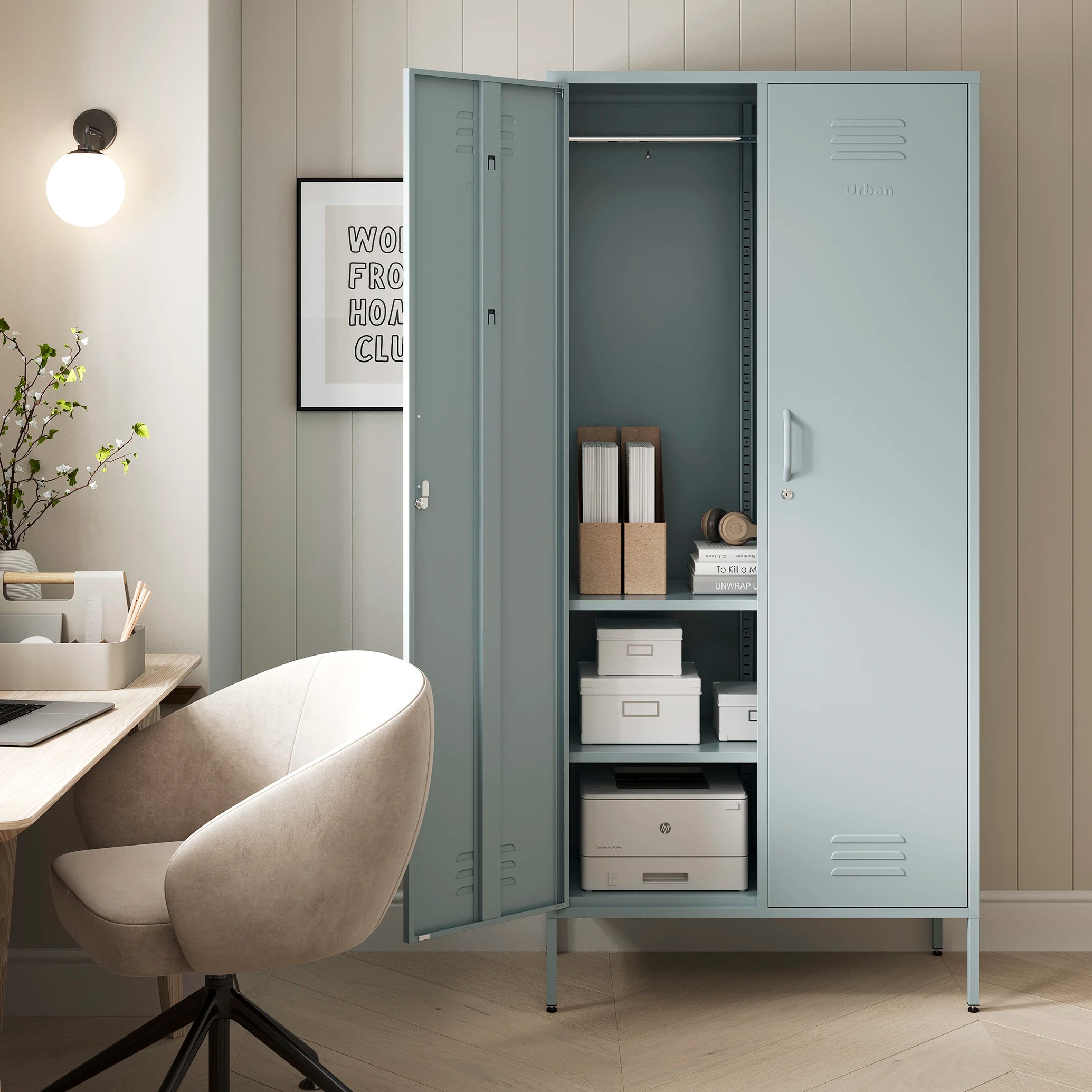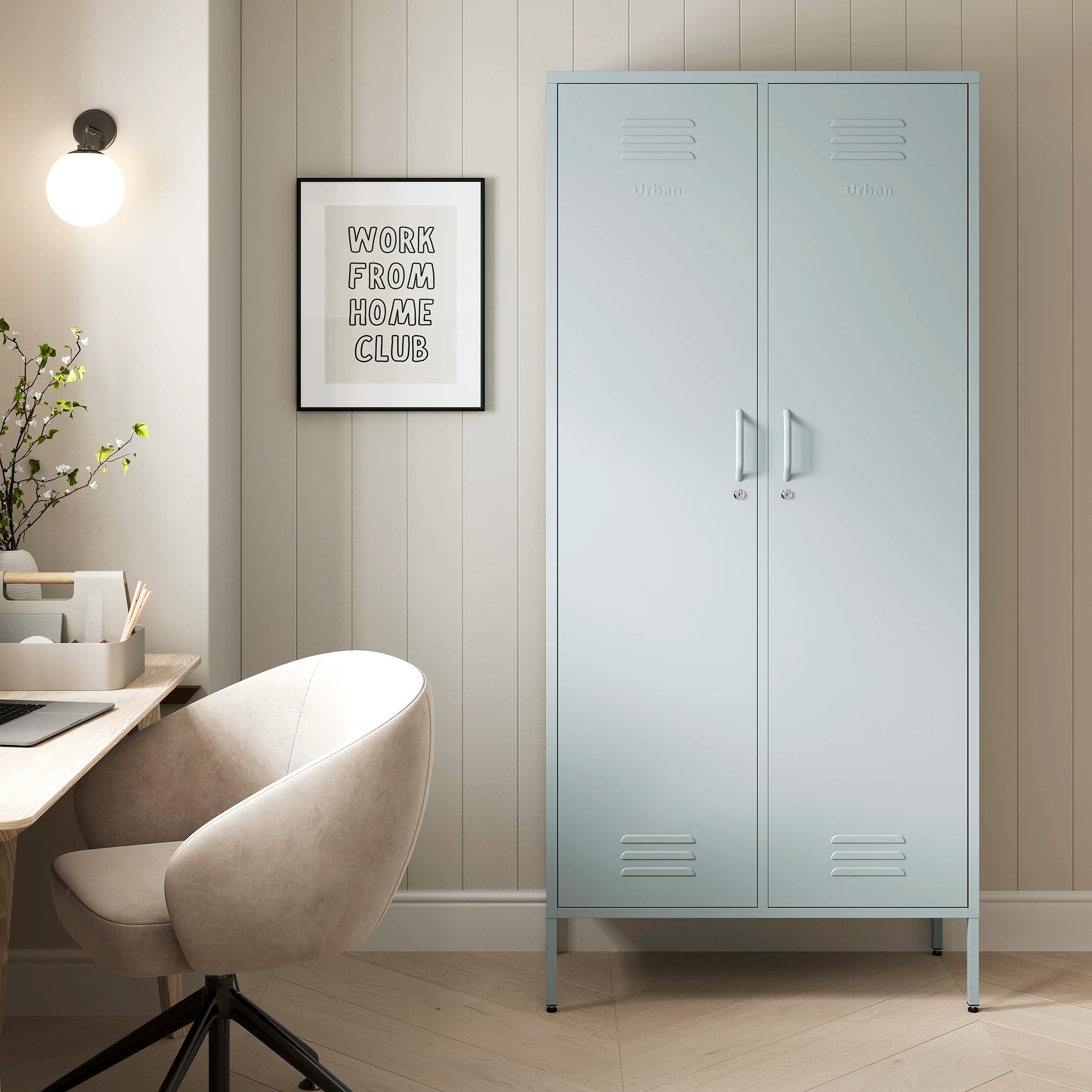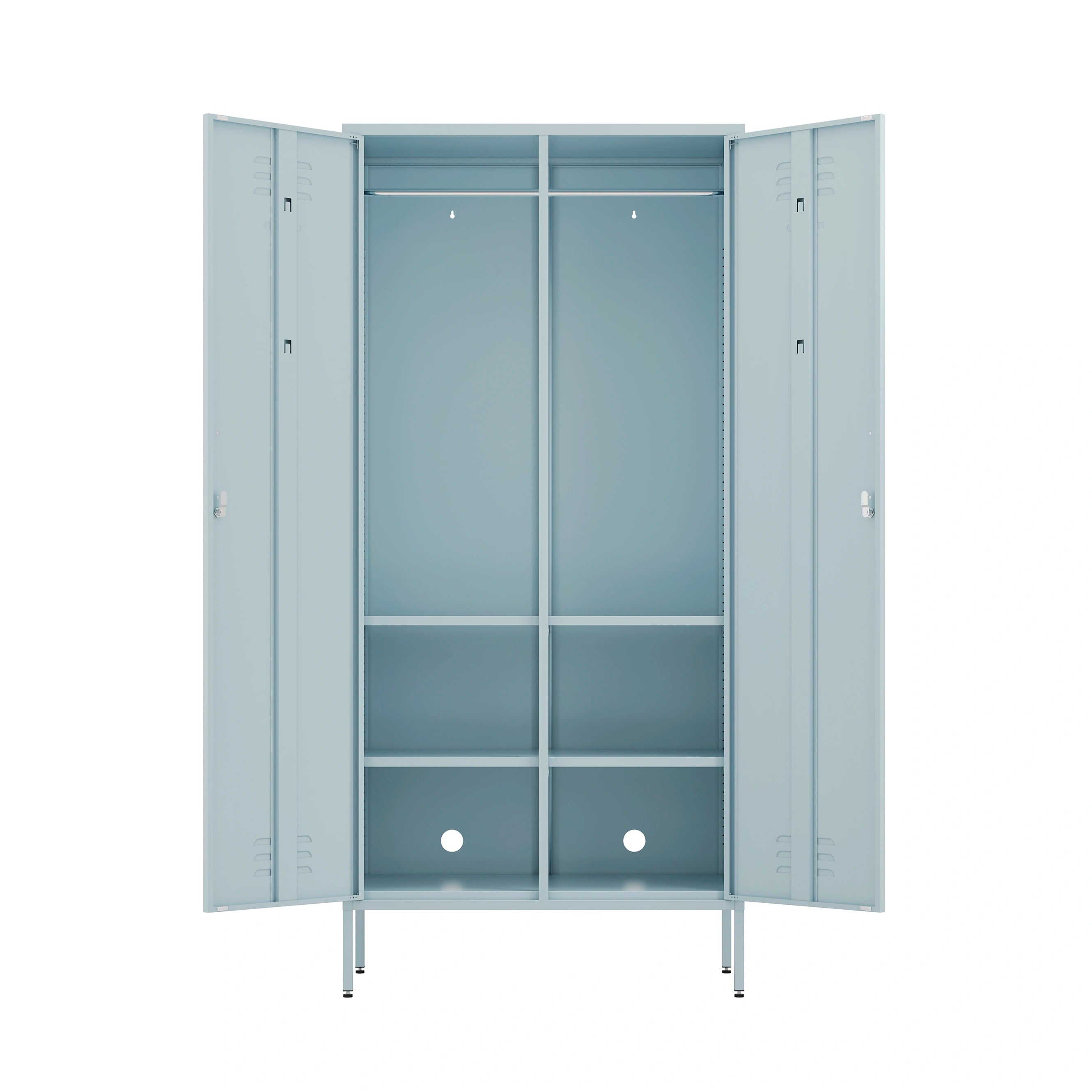- Metal garderobe med dobbeltdør, pulverlakeret Himmelblå