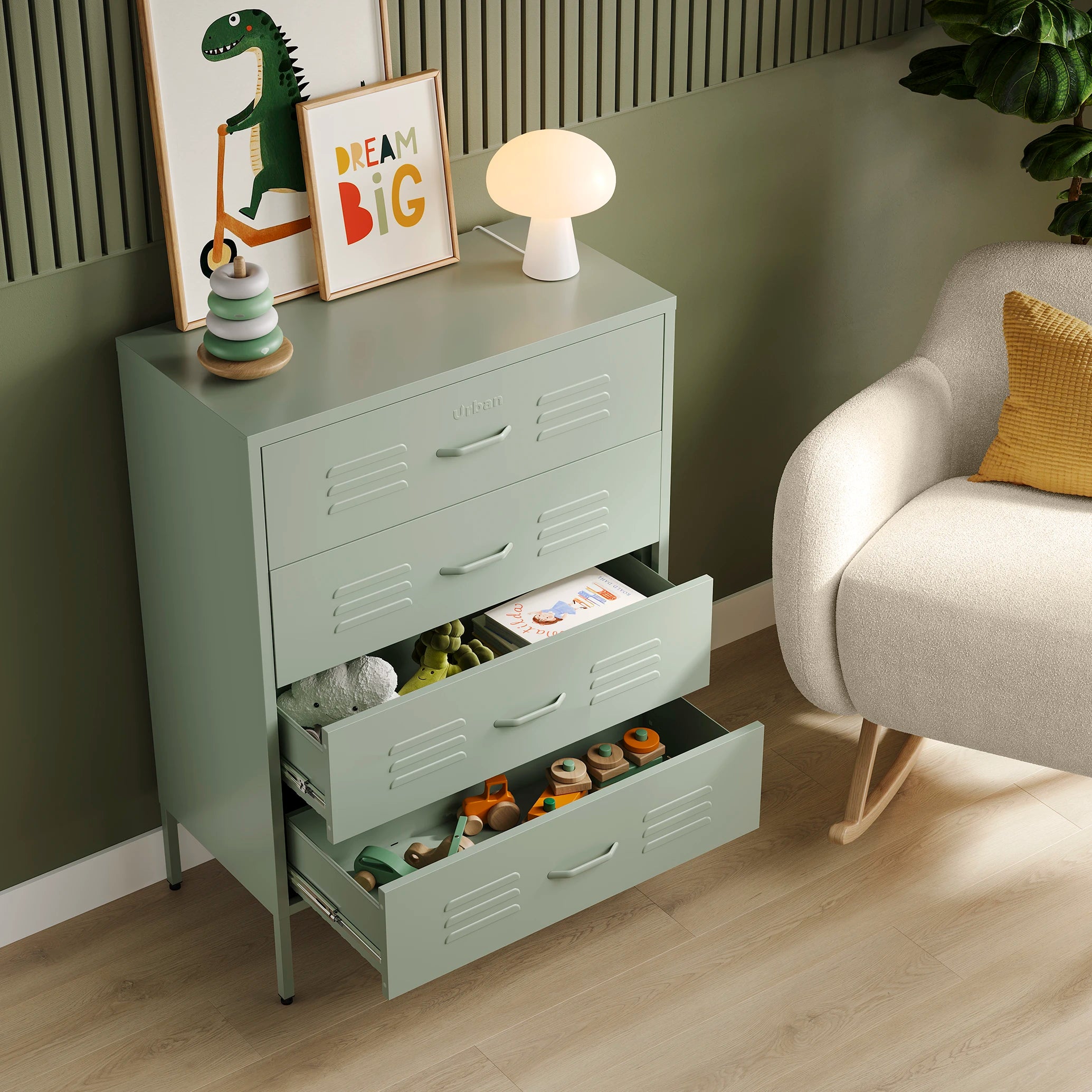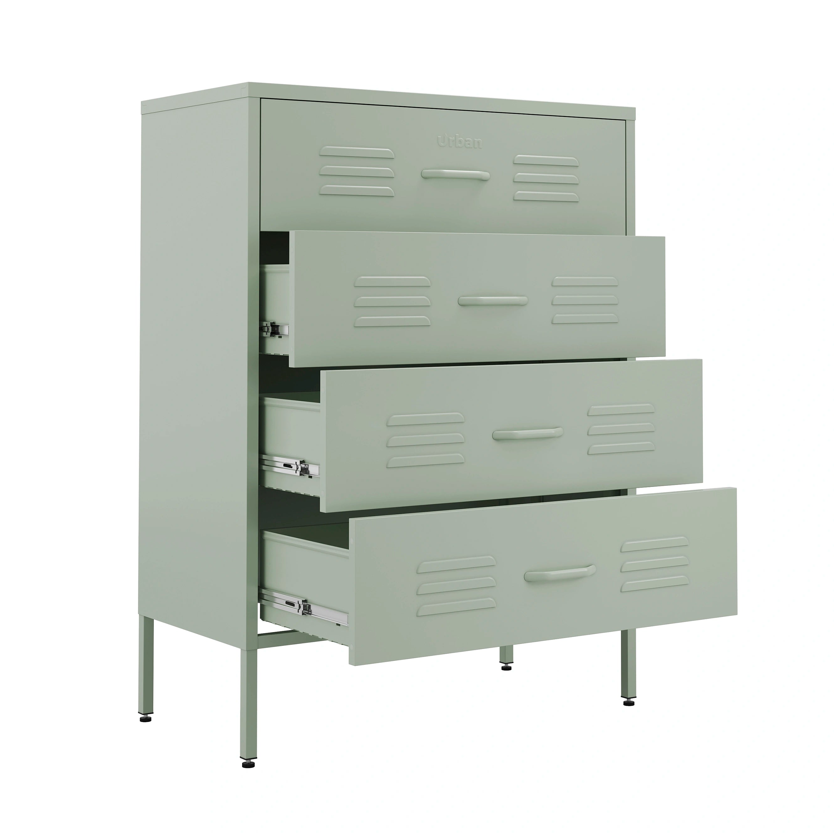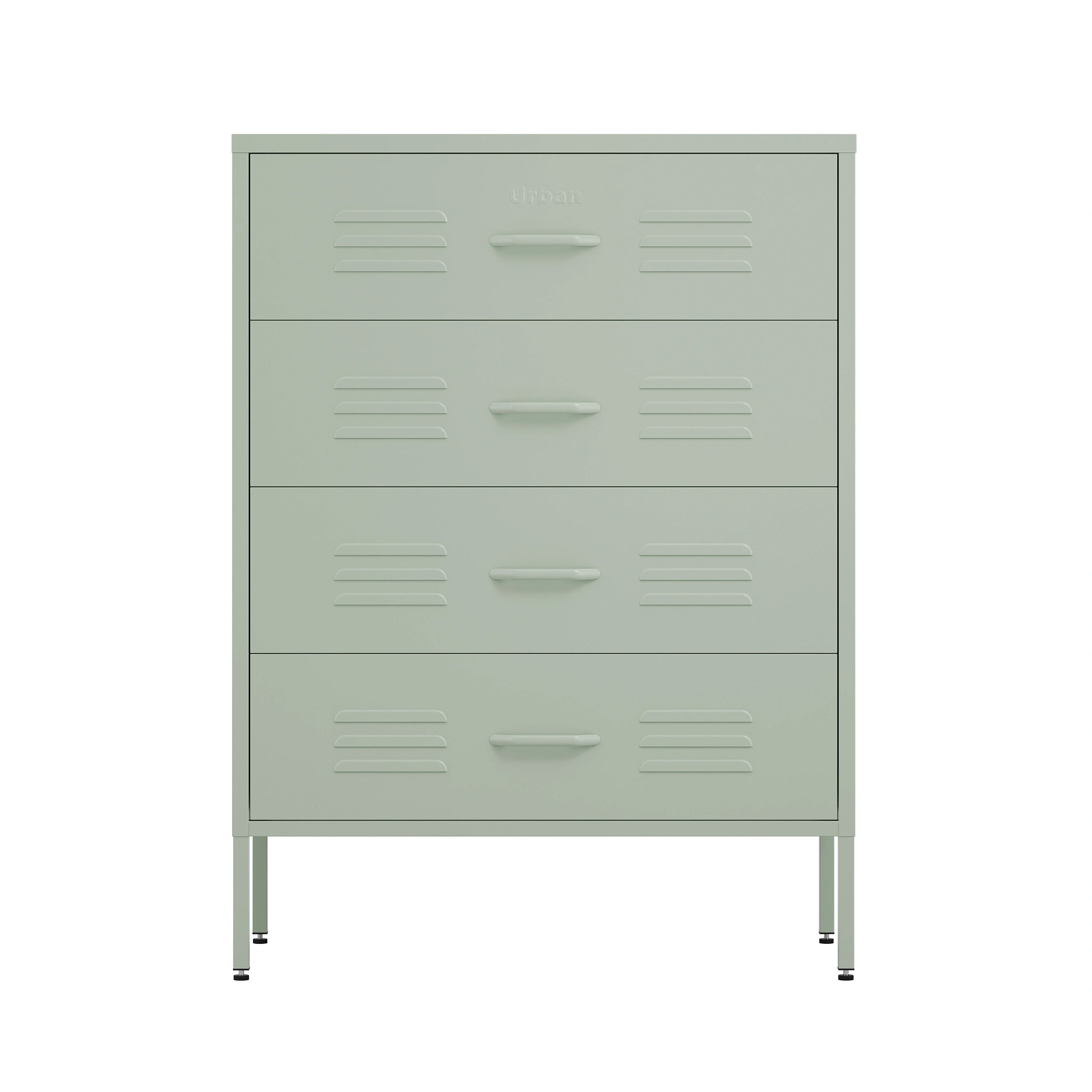 Sage Green Harrow metalskabet kombinerer en frisk pastelfarve med praktisk opbevaring. Dette skab med fire skuffer er perfekt til at holde tøj, sengetøj eller hverdagsting pænt gemt væk, mens de glidende metalskuffer giver nem adgang. Skabsskuffe Ventilationsåbninger fremmer luftgennemstrømningen og holder opbevarede genstande friske, mens justerbare fødder og vægmonteringshuller giver stabilitet og fleksibilitet. Uanset om den er designet som en moderne soveværelsesskuffe eller en elegant kontoropbevaringsenhed, dette salviegrønt skab tilføjer et strejf af charme til ethvert rum.
