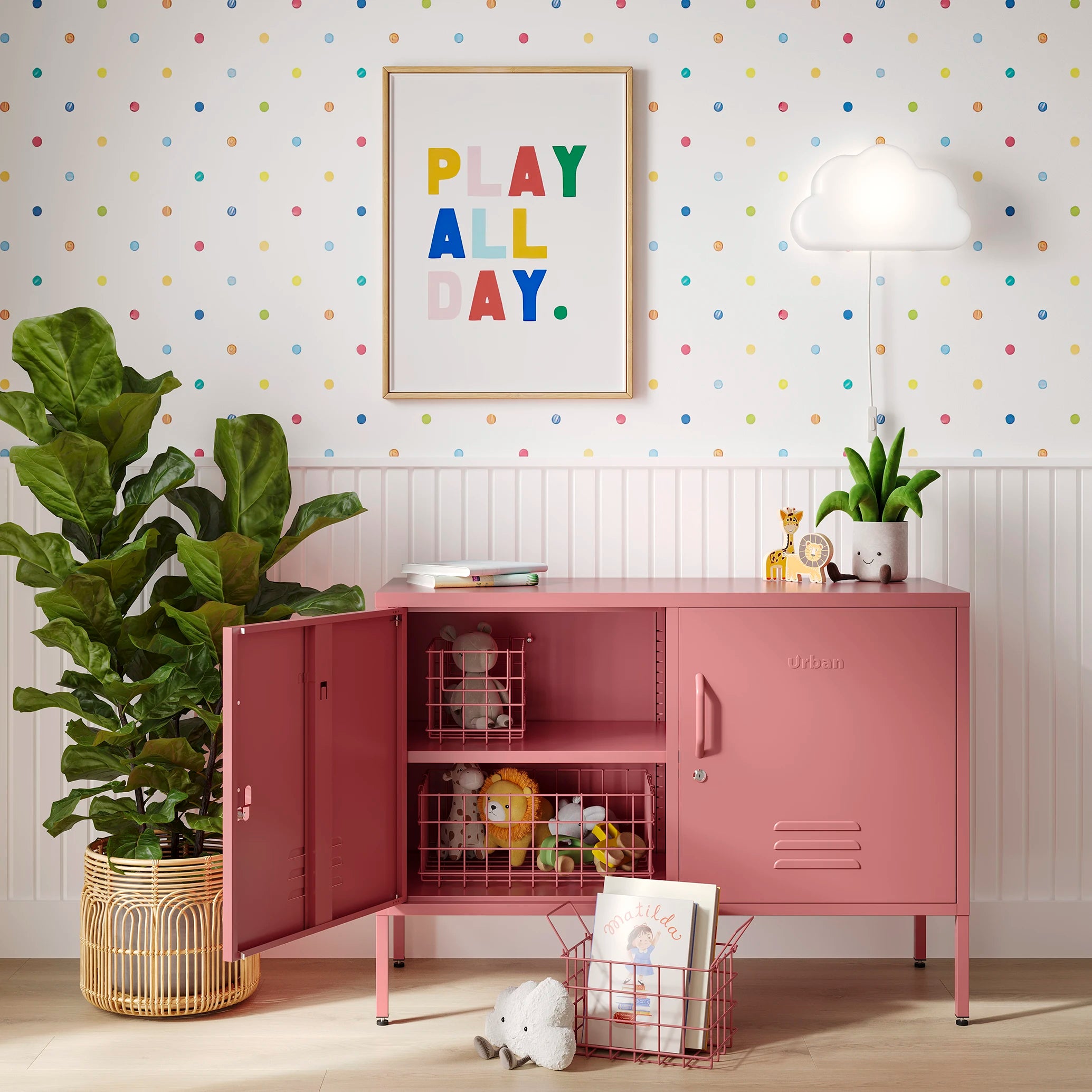 - Legetøjsopbevaring – En praktisk måde at opbevare legetøj, brætspil og andre ting til legerummet.