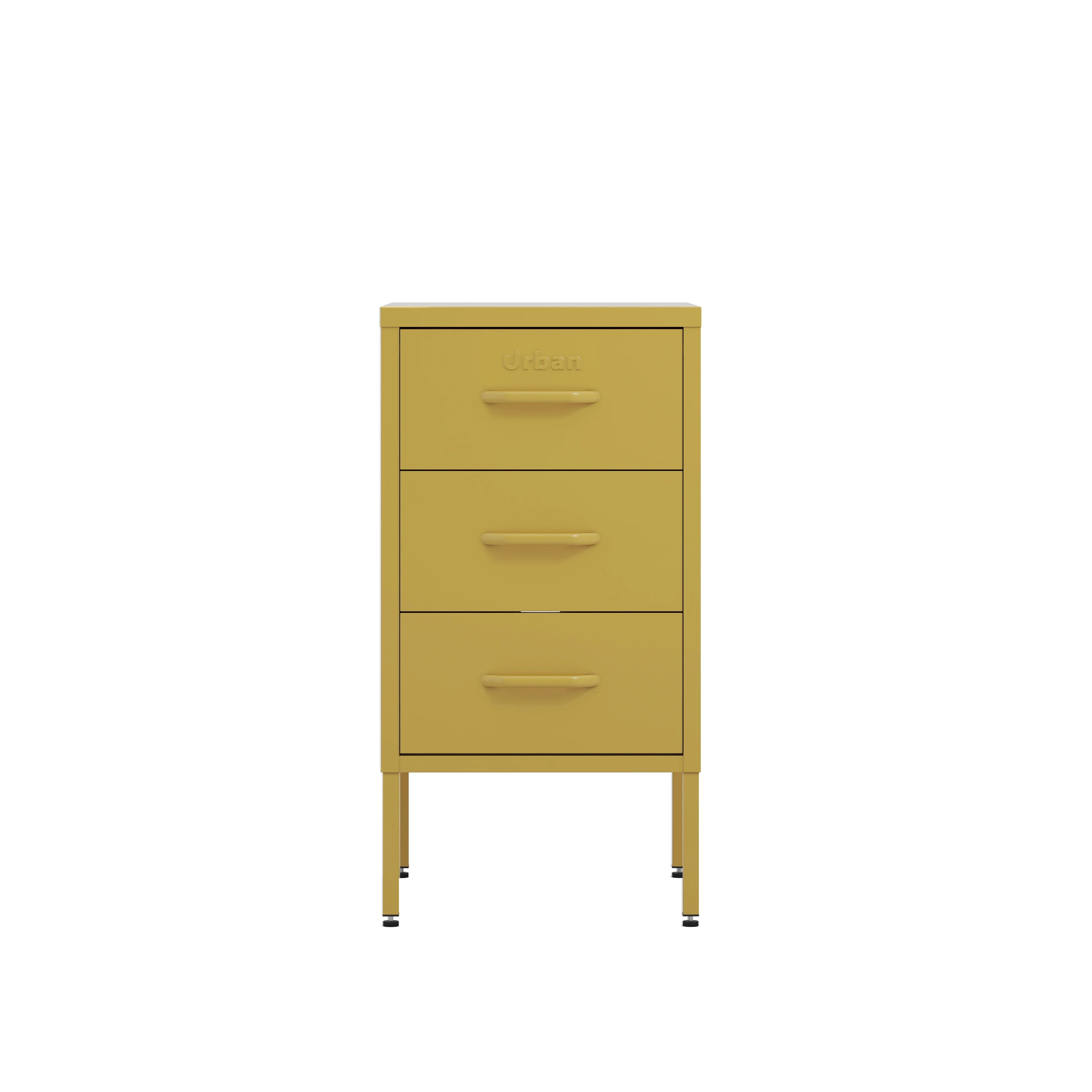 Mustard Richmond-metalskabet kombinerer en frisk pastelfarve med praktisk opbevaring. Dette skab med tre skuffer er perfekt til kontorer, sengeborde og meget mere og tilbyder praktisk opbevaring i ethvert miljø. Uanset om den er moderne designet soveværelsesskuffe eller en elegant kontoropbevaringsenhed, dette sennepsgule skab tilføjer et strejf af charme til ethvert rum.