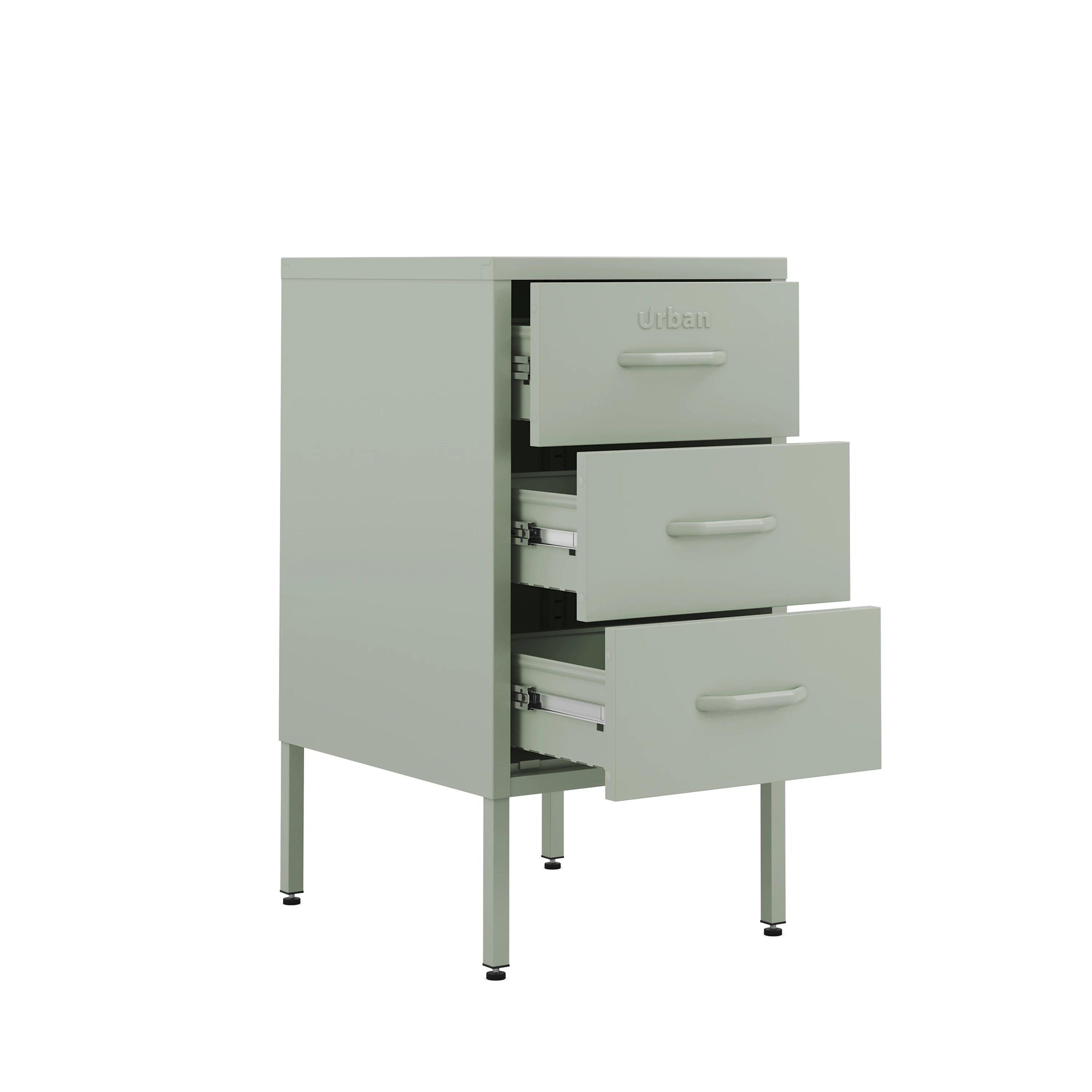 Sage Richmond metalskabet kombinerer en frisk pastelfarve med praktisk opbevaring. Dette skab med tre skuffer er perfekt til kontorer, sengeborde og meget mere og tilbyder praktisk opbevaring i ethvert miljø. Uanset om den er moderne designet soveværelsesskuffe eller en elegant kontoropbevaringsenhed, dette salvieskab tilføjer et strejf af charme til ethvert rum.