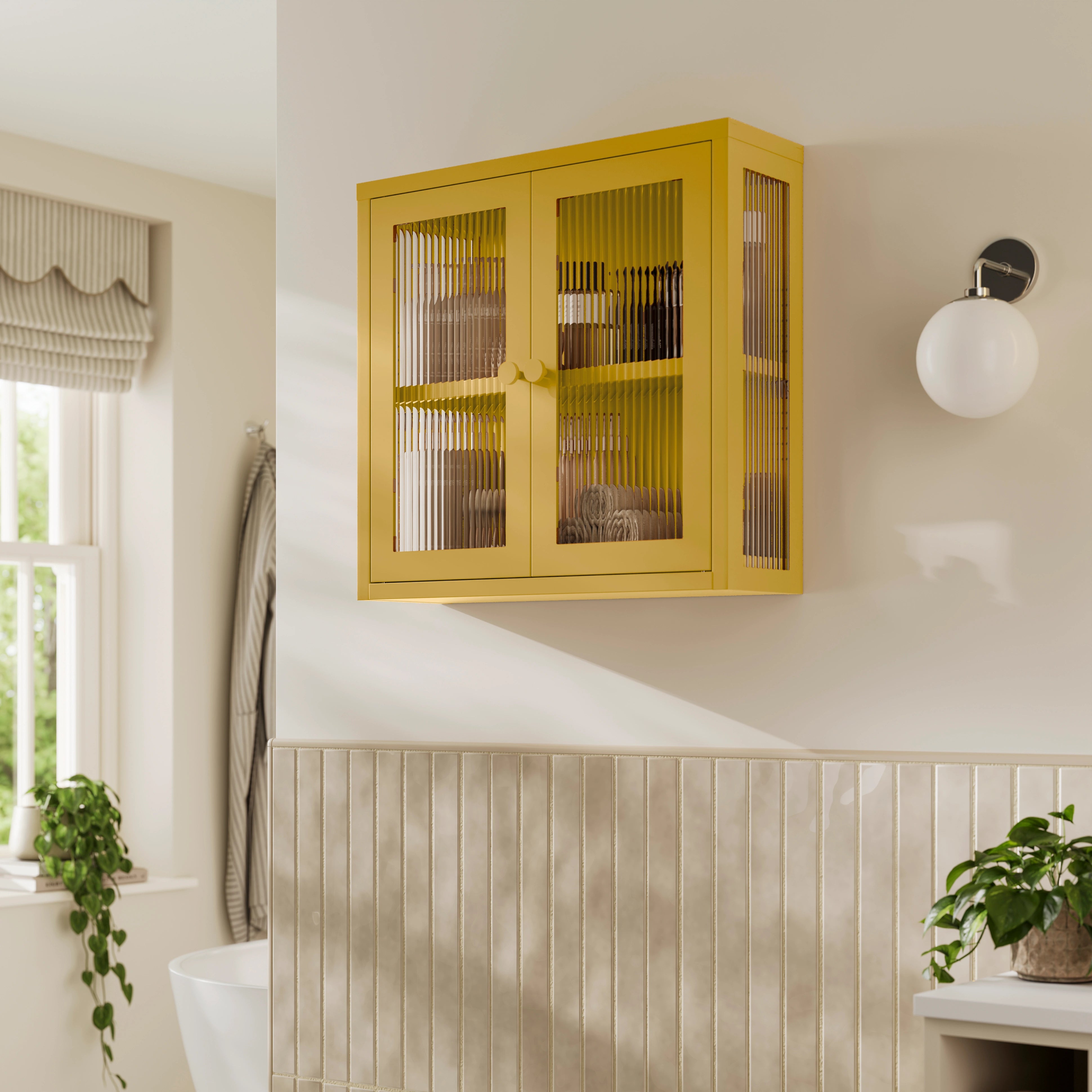 The Chester - Fluted Glass Wall Cabinet In Mustard - Urban Lockers