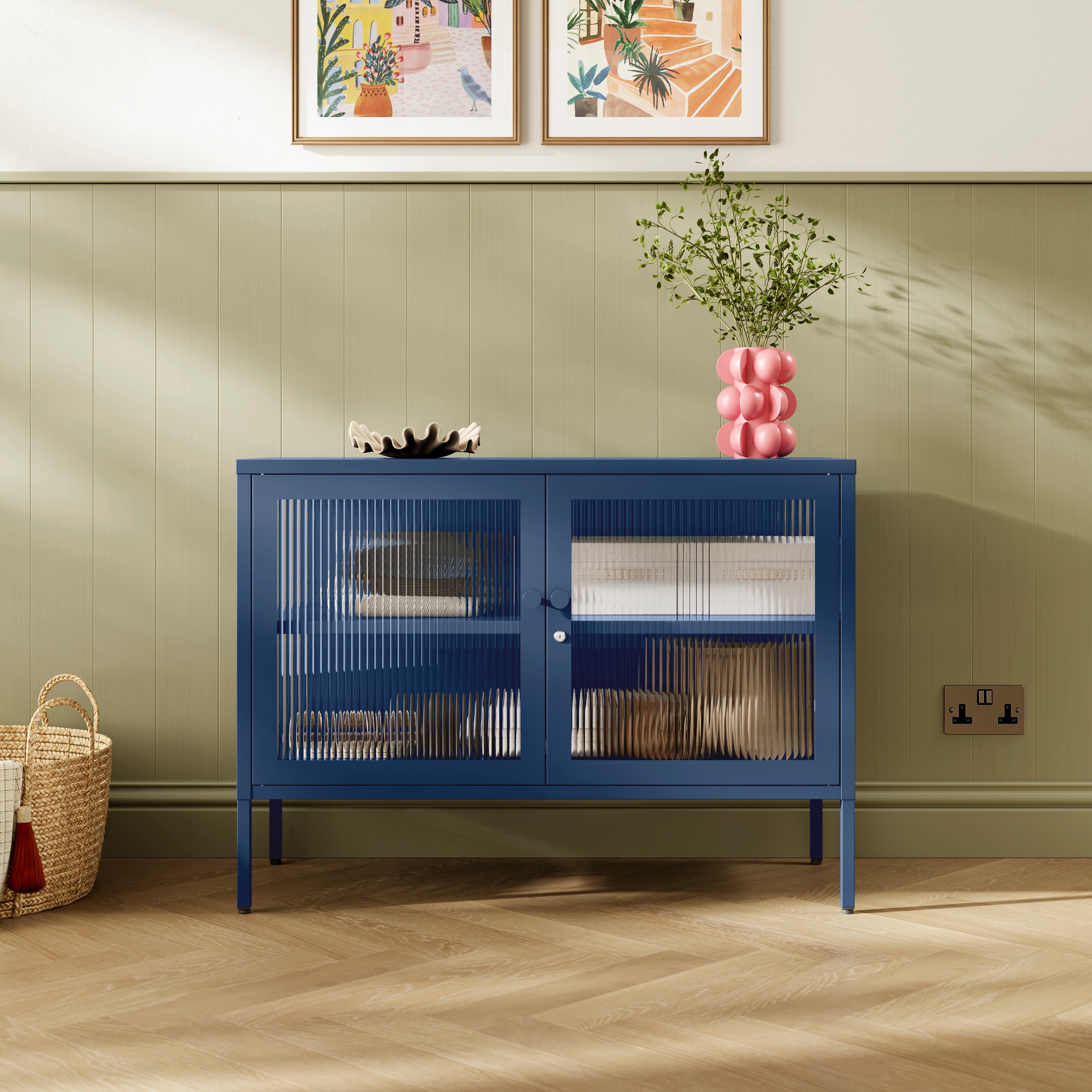 Home » Lockers » The Cambridge - Fluted Glass Sideboard Locker In Navy Blue