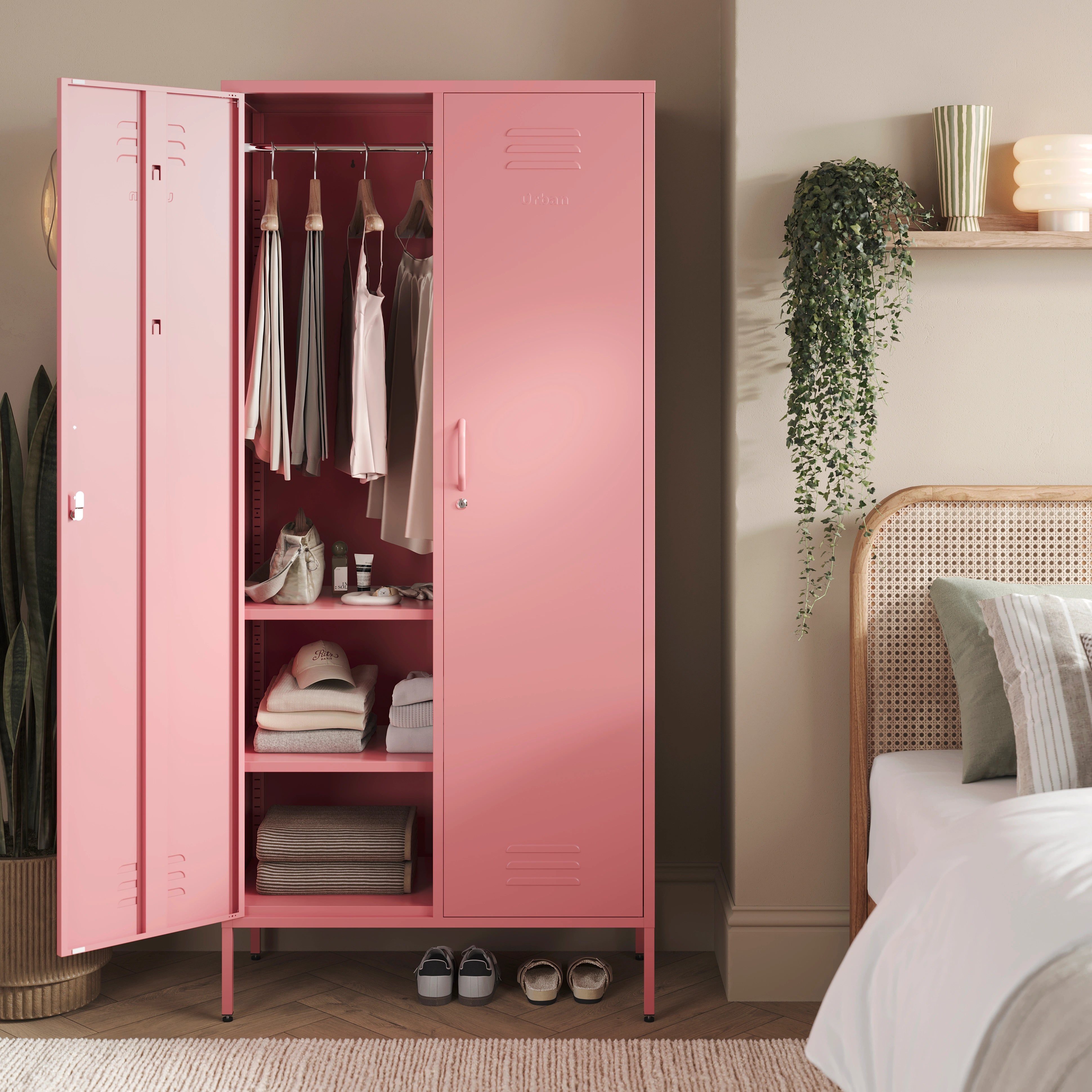 - Armario ropero de metal con doble puerta y revestimiento en polvo en color Flamingo