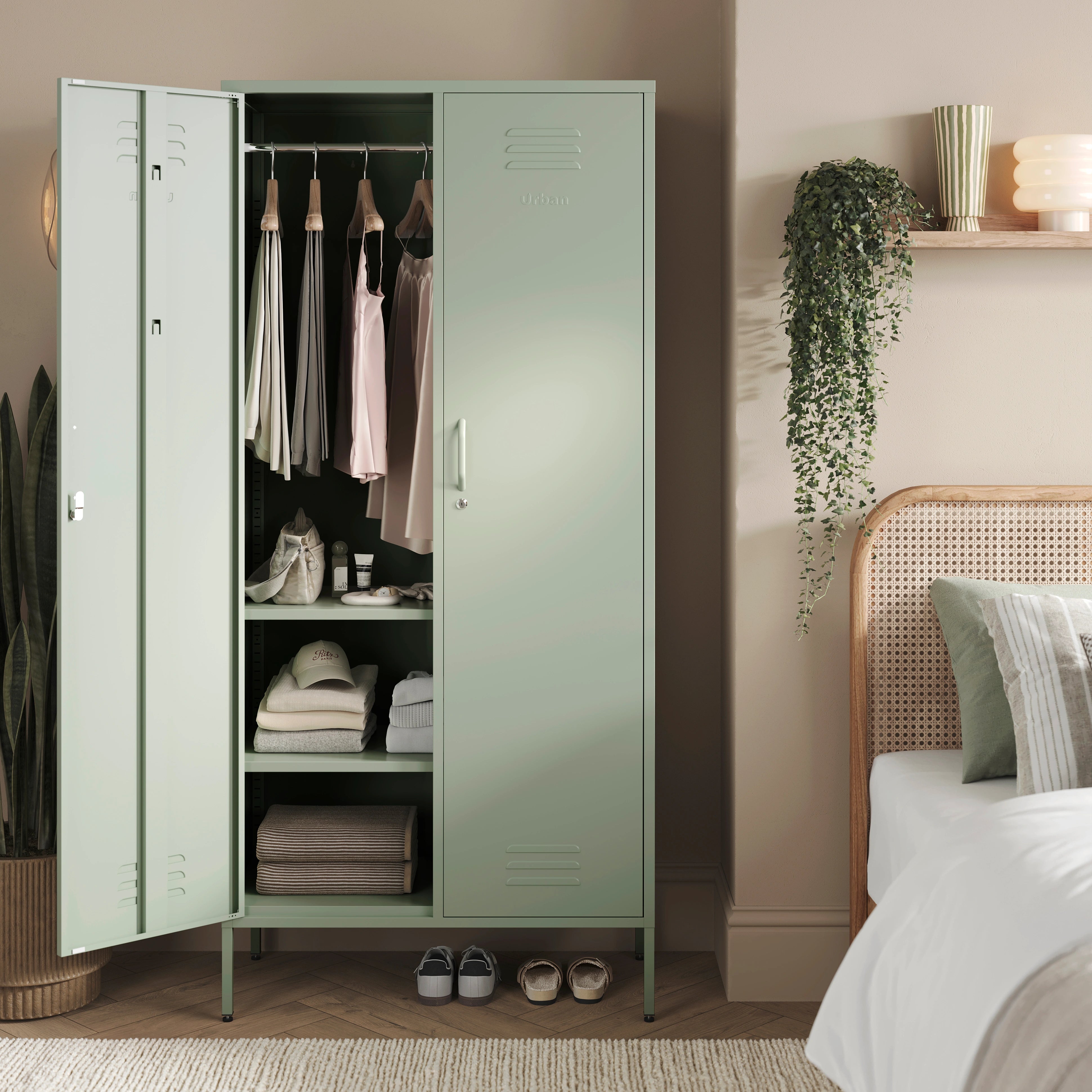 - Armadio guardaroba a doppia anta in metallo verniciato a polvere color salvia