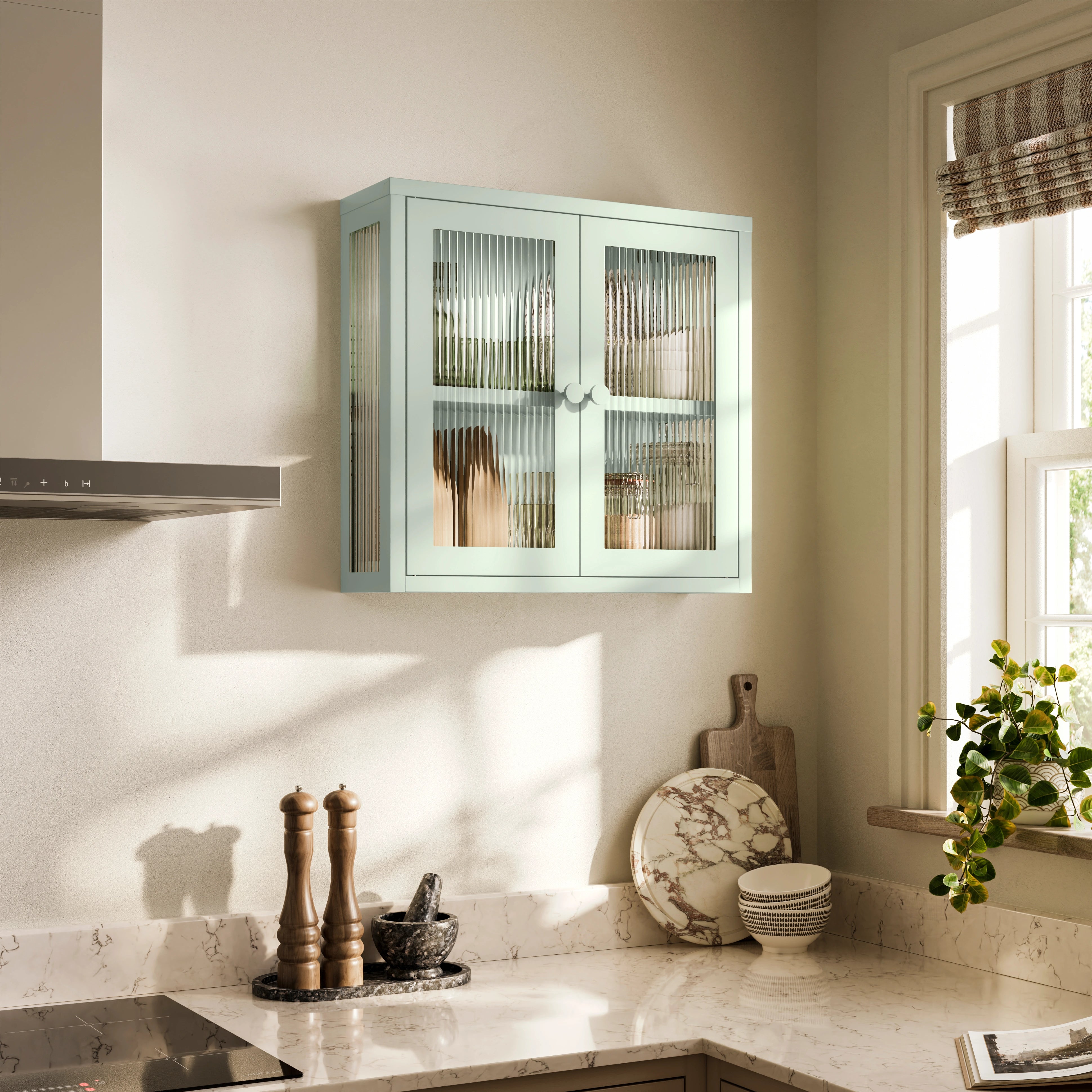 The Chester - Fluted Glass Wall Cabinet In Sage - Urban Lockers