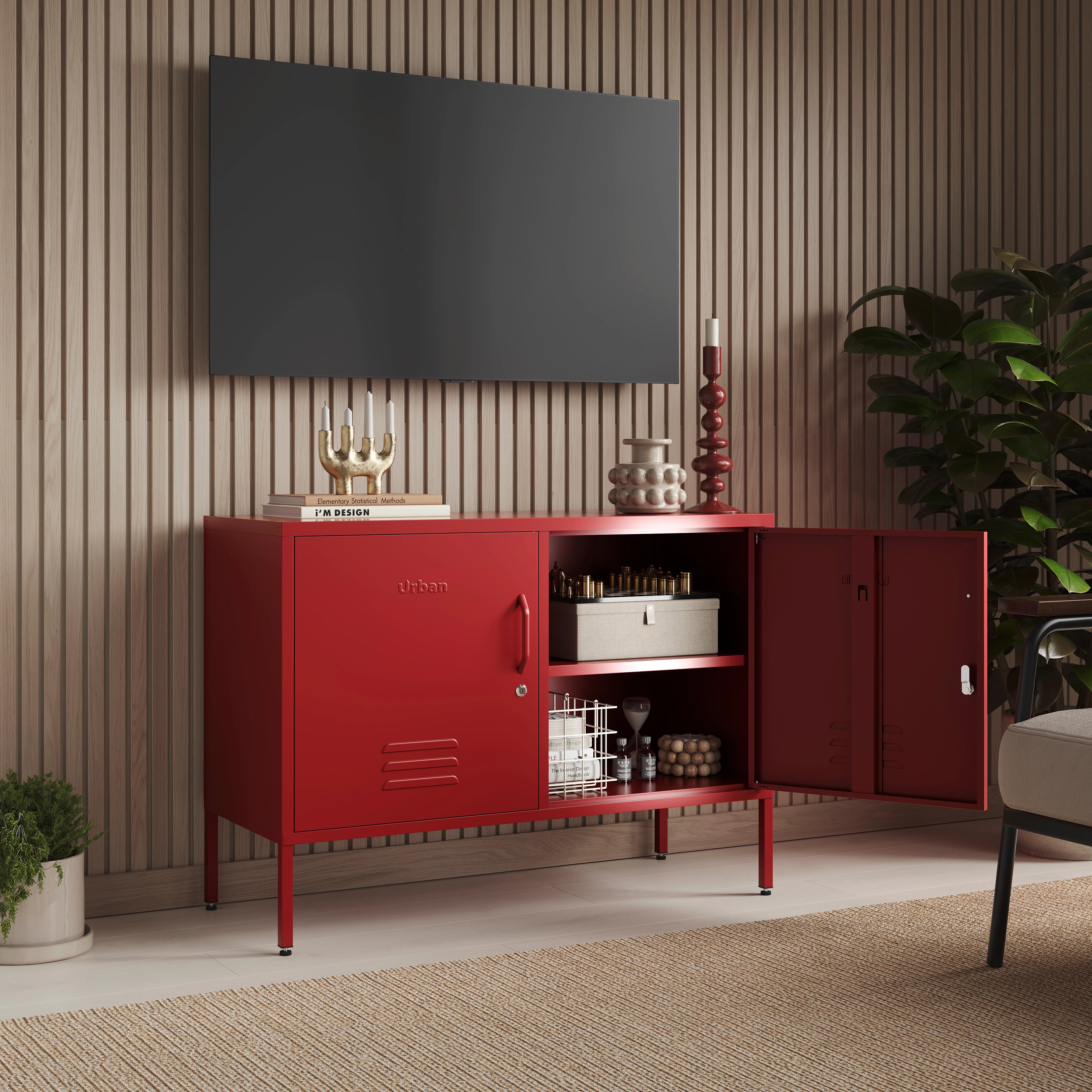 - Metalen tv-meubel met dubbele deur, gepoedercoat in rood