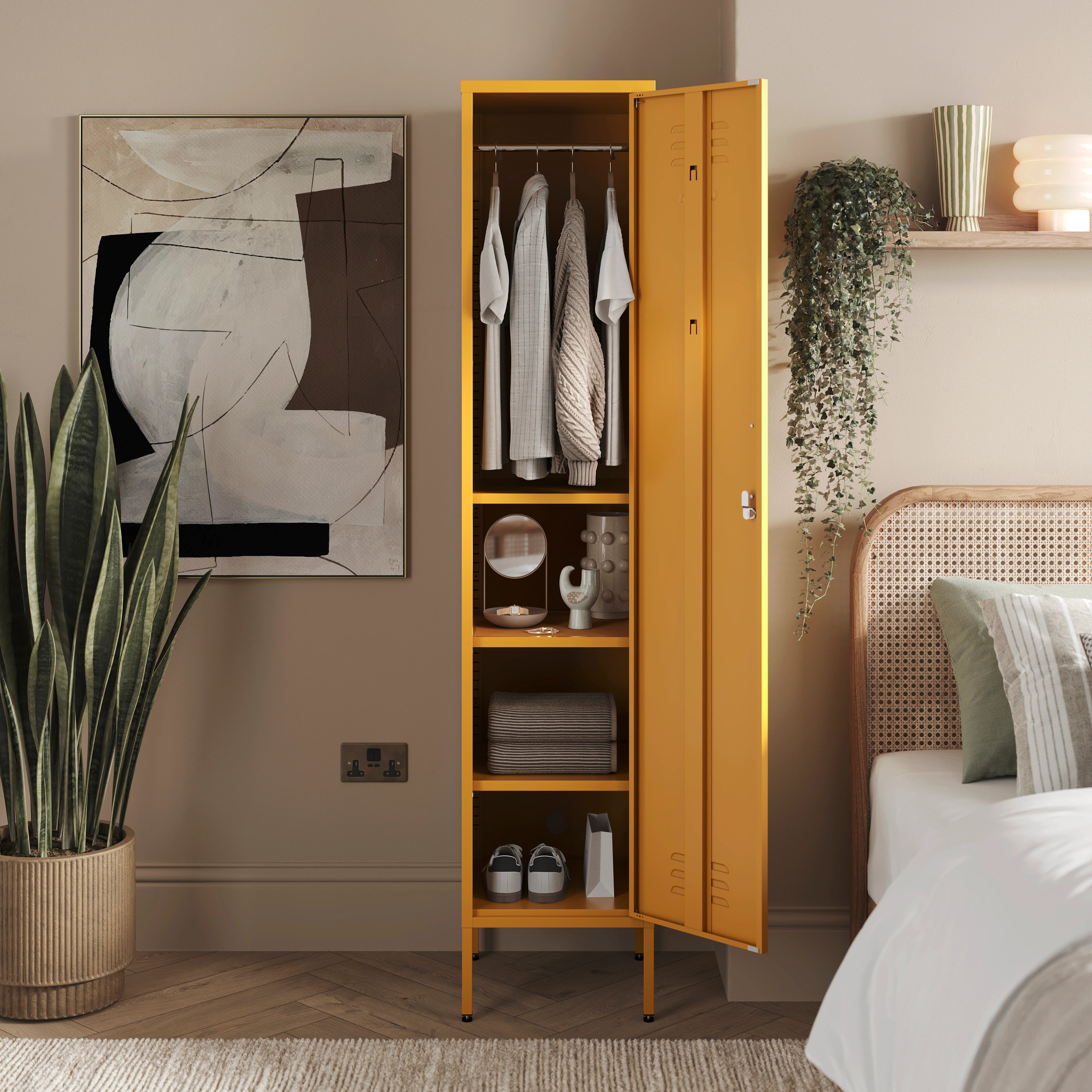 The Mustard Bexley is a tall, slim storage locker brings colour and style to even the smallest of spaces, with its neat design making it a great choice to accompany any room. With its magnetic surface and fully adjustable shelves, this Mustard locker is perfect for adding a touch of colour to bedrooms, hallways, or anywhere you need extra storage. The vibrant Mustard finish brings a pop of personality while helping you stay organised. Whether you're storing clothes, accessories, or daily essentials, the Mustard Bexley is both bold and practical. Plus, it’s packed with extra features such as a magnetic surface, handy hooks, wall mounting holes and adjustable feet.