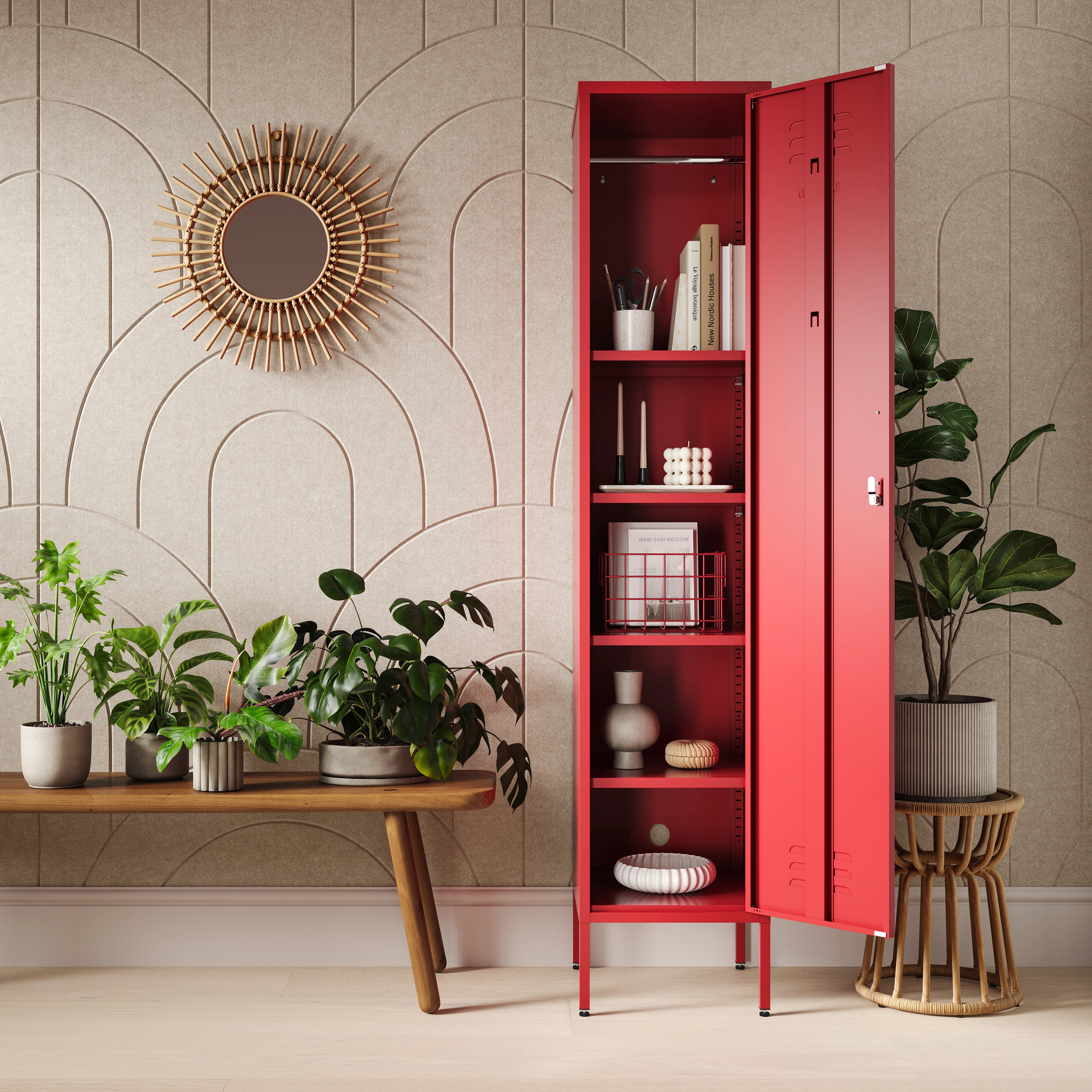Make the most of every inch of space with the Red Bexley; a tall, slim storage locker designed to add a splash of colour to even the smallest of spaces. With its magnetic surface and fully adjustable shelves, this Bexley locker is perfect for adding a touch of colour to bedrooms, hallways, or anywhere you need extra storage. The Red finish brings a pop of personality while helping you stay organised. Whether you're storing books, accessories, or daily essentials, the Red Bexley is both pretty and practical. Plus, it’s packed with extra features such as a magnetic surface, handy hooks, wall mounting holes and adjustable feet.
