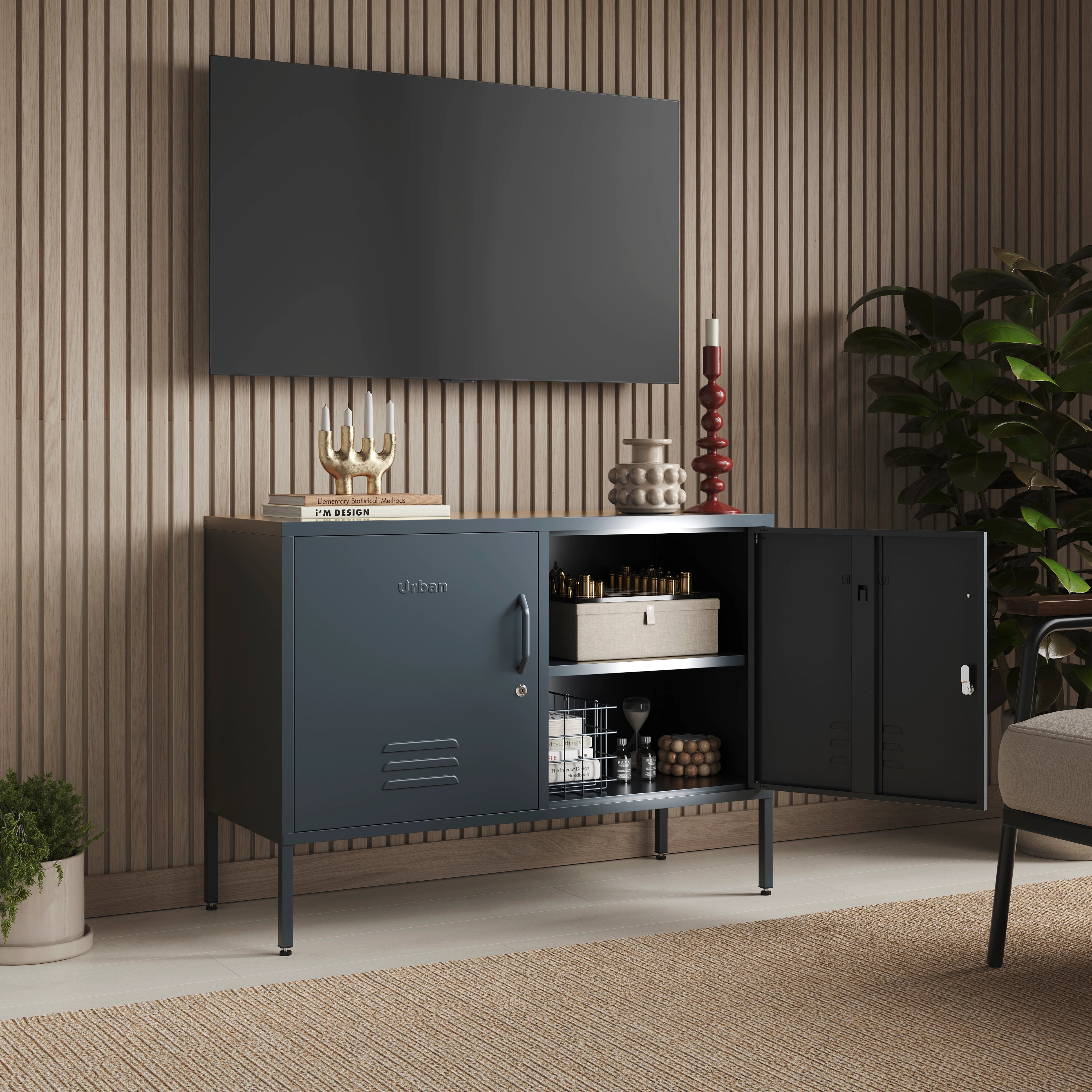- Metal double door locker TV Stand powder coated in Slate Grey