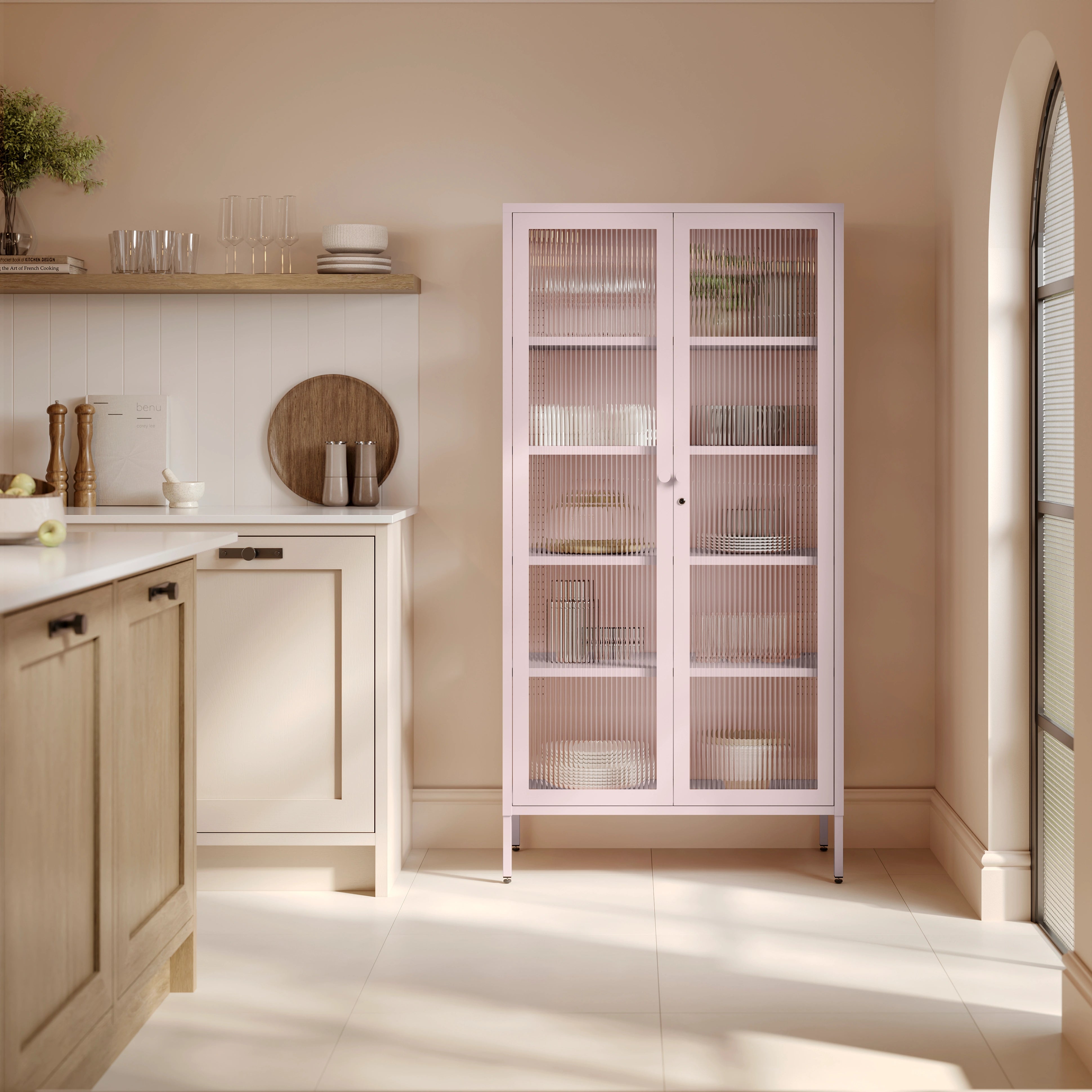 The Regent - Fluted Glass Double Door Locker In Light Pink
