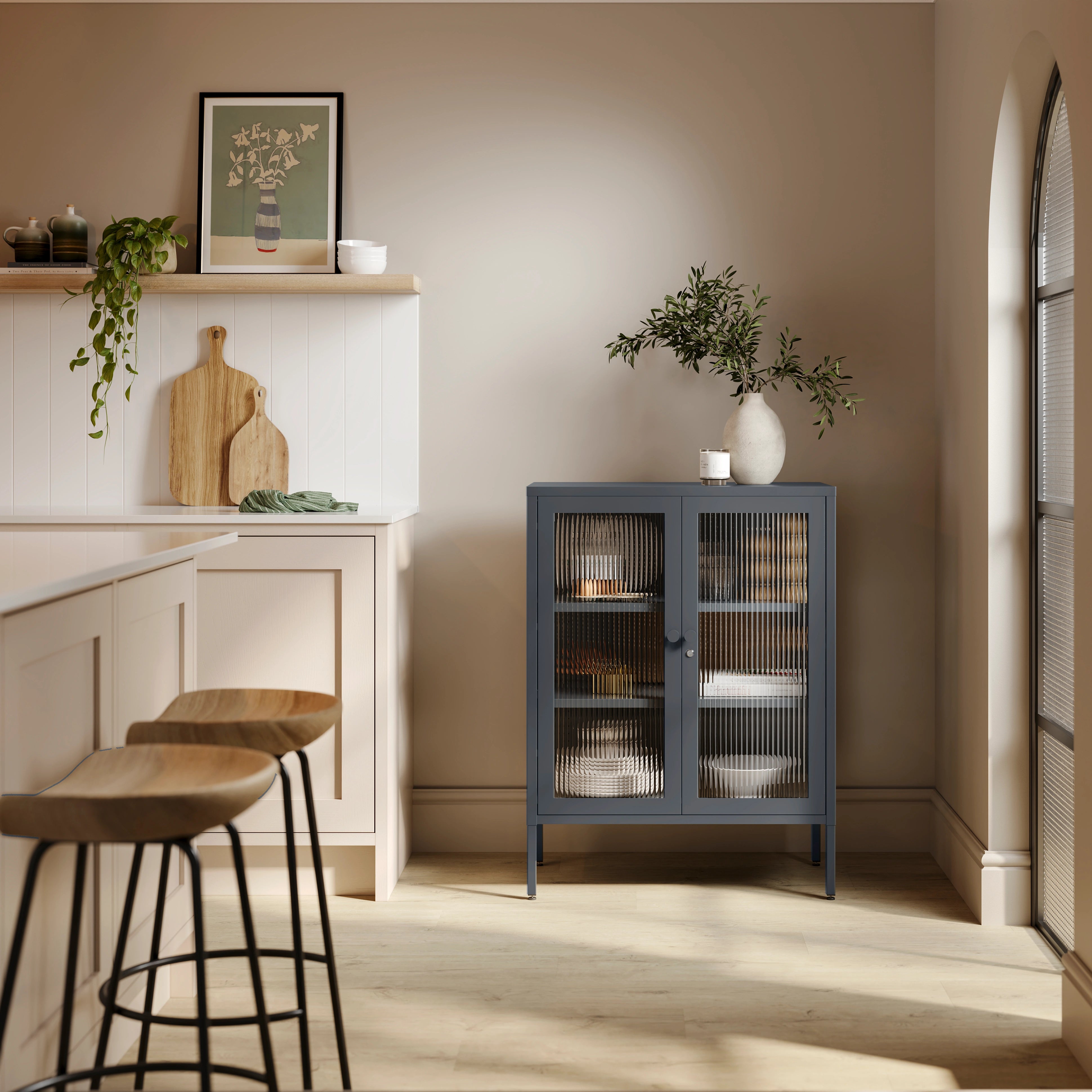 The Soho locker brings together the practicality you need with fluted glass panels that make it genuinely worth looking at. This two-door sideboard style locker is built for the things you want close at hand, whether that is books, bottles, files or everyday essentials, all kept secure behind a lockable door.