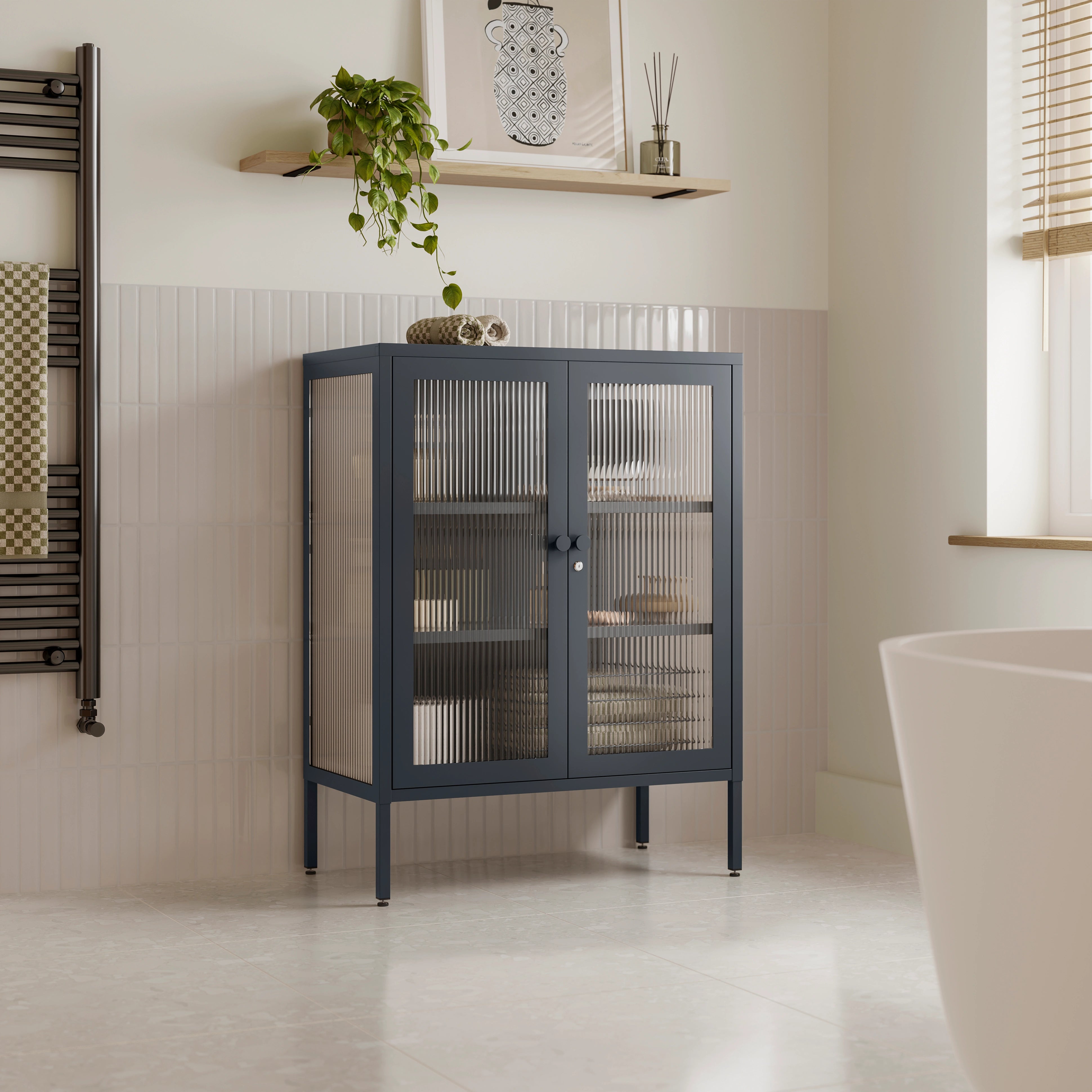 Home » Lockers » The Soho - Fluted Glass Double Door Locker In Slate Grey