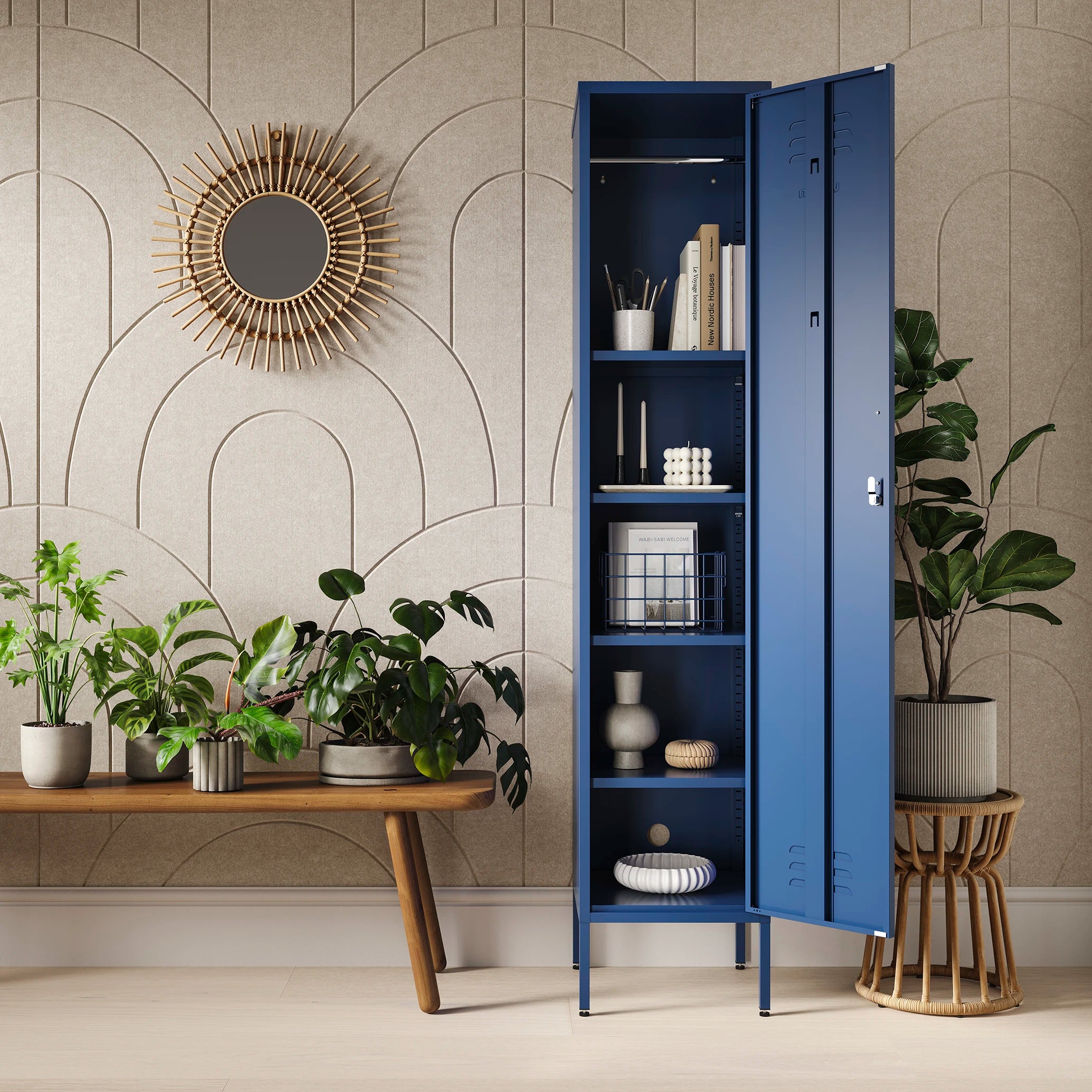 Make the most of every inch of space with the Navy Blue Bexley; a tall, slim storage locker designed to add a splash of colour to even the smallest of spaces. With its magnetic surface and fully adjustable shelves, this Bexley locker is perfect for adding a touch of colour to bedrooms, hallways, or anywhere you need extra storage. The Navy Blue finish brings a pop of personality while helping you stay organised. Whether you're storing books, accessories, or daily essentials, the Navy Blue Bexley is both pretty and practical. Plus, it’s packed with extra features such as a magnetic surface, handy hooks, wall mounting holes and adjustable feet.