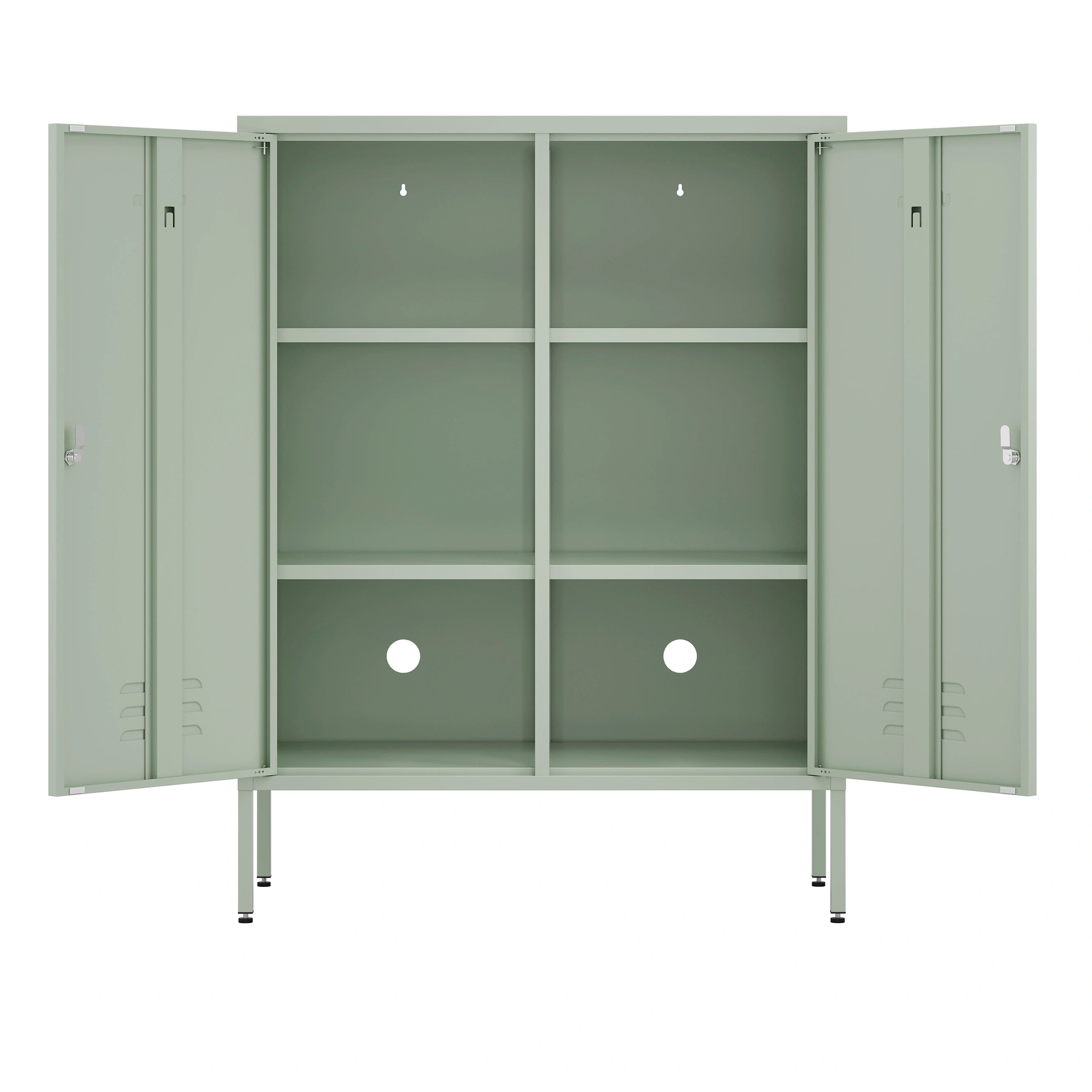• Metal Double Door Locker Sideboard Powder Coated in Sage