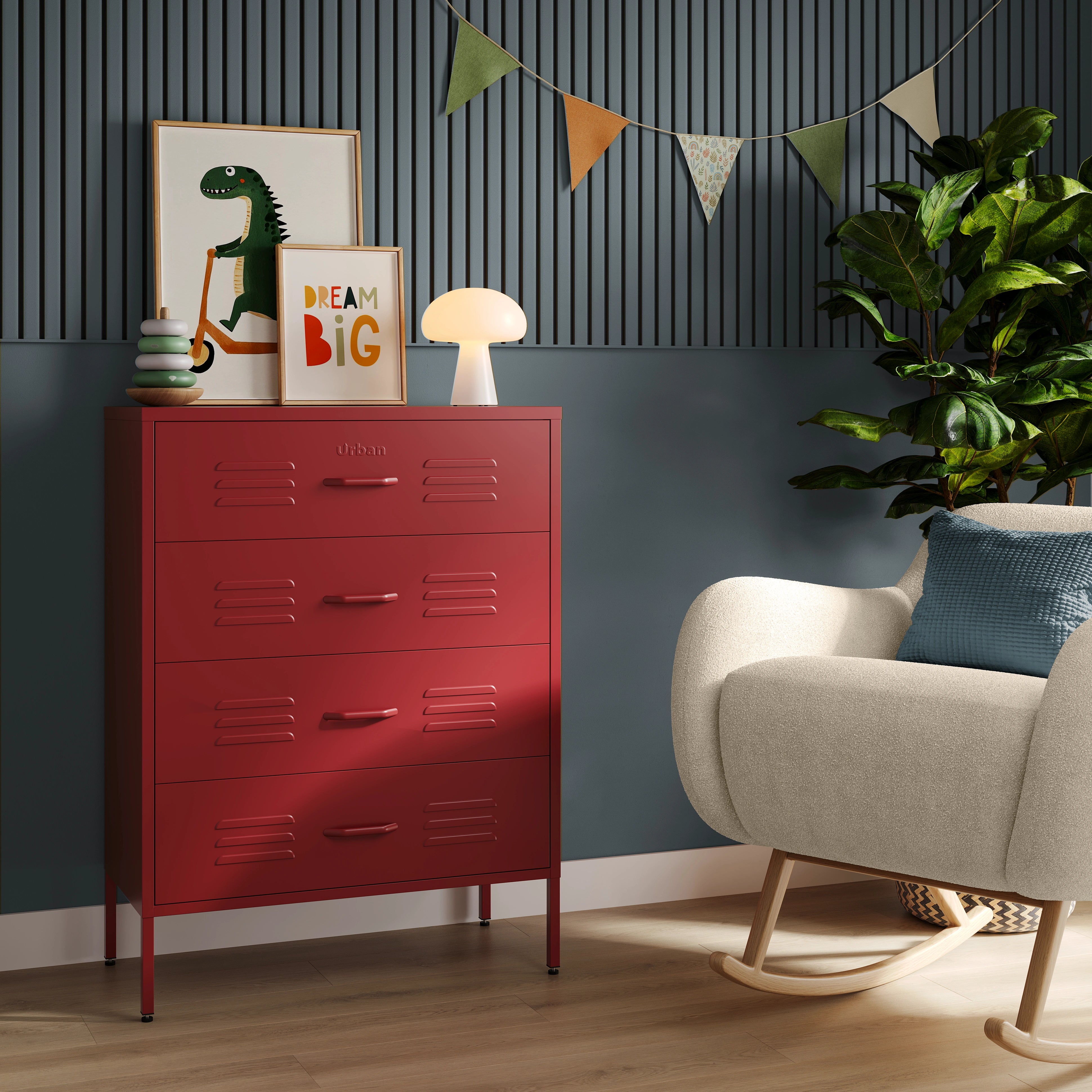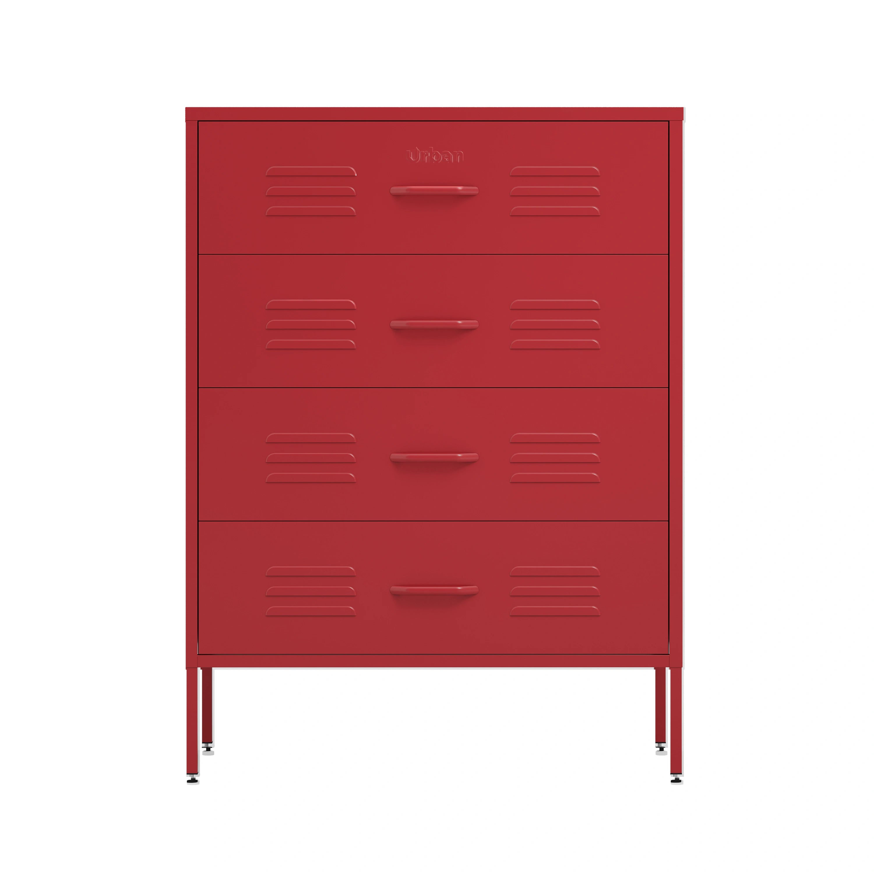 The Red Harrow metal drawer locker combines a fresh, pastel tone with practical storage. This four-drawer locker is perfect for keeping clothes, linens, or everyday essentials neatly tucked away, while the smooth-gliding metal drawers offer effortless access. Locker drawer vents promote airflow, keeping stored items fresh, while adjustable feet and wall-mounting holes provide stability and flexibility. Whether styled as a modern bedroom drawer locker or a sleek office storage unit, this red locker adds a touch of charm to any space.