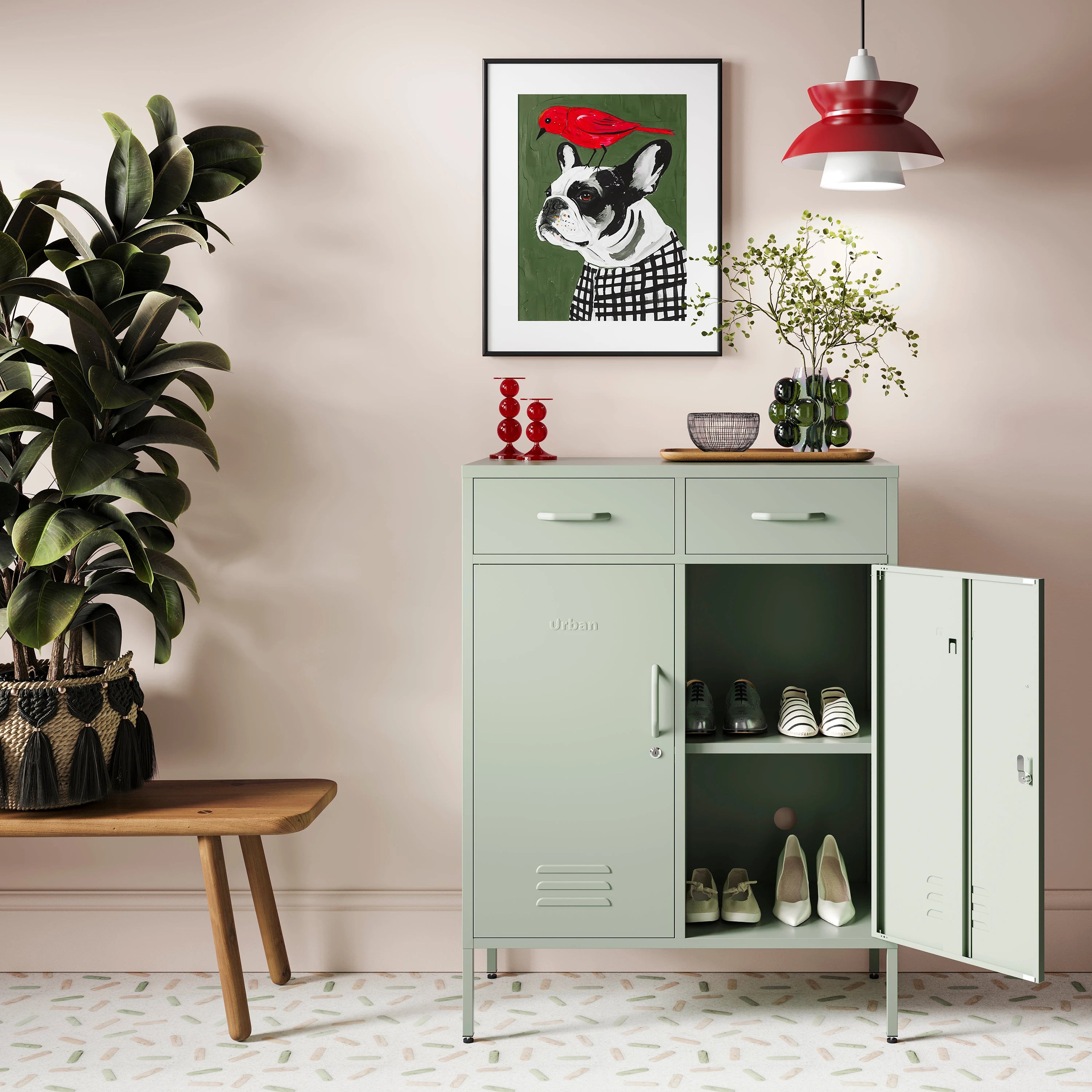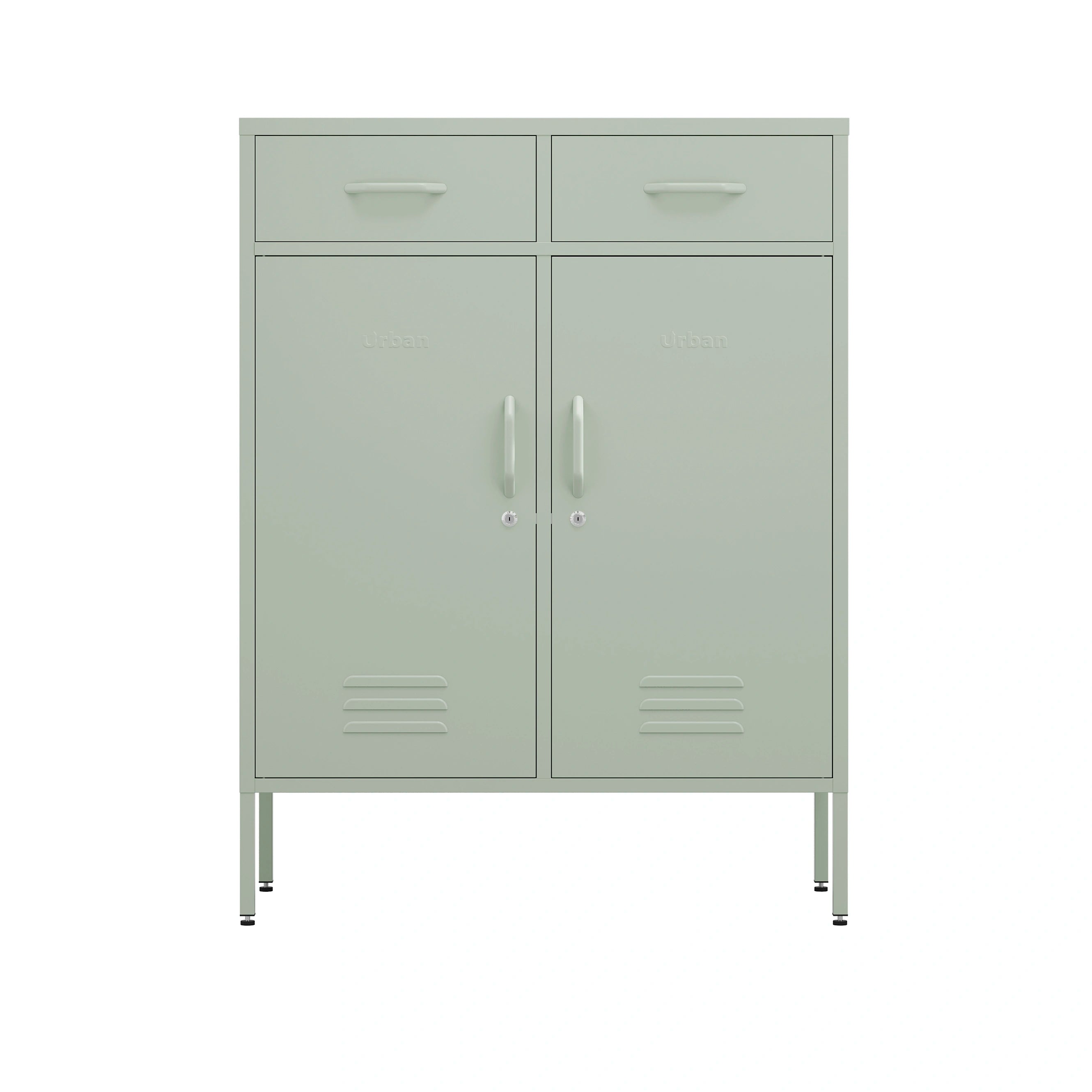 The Kensington 2 door metal locker with 2 drawers above, in sage green.