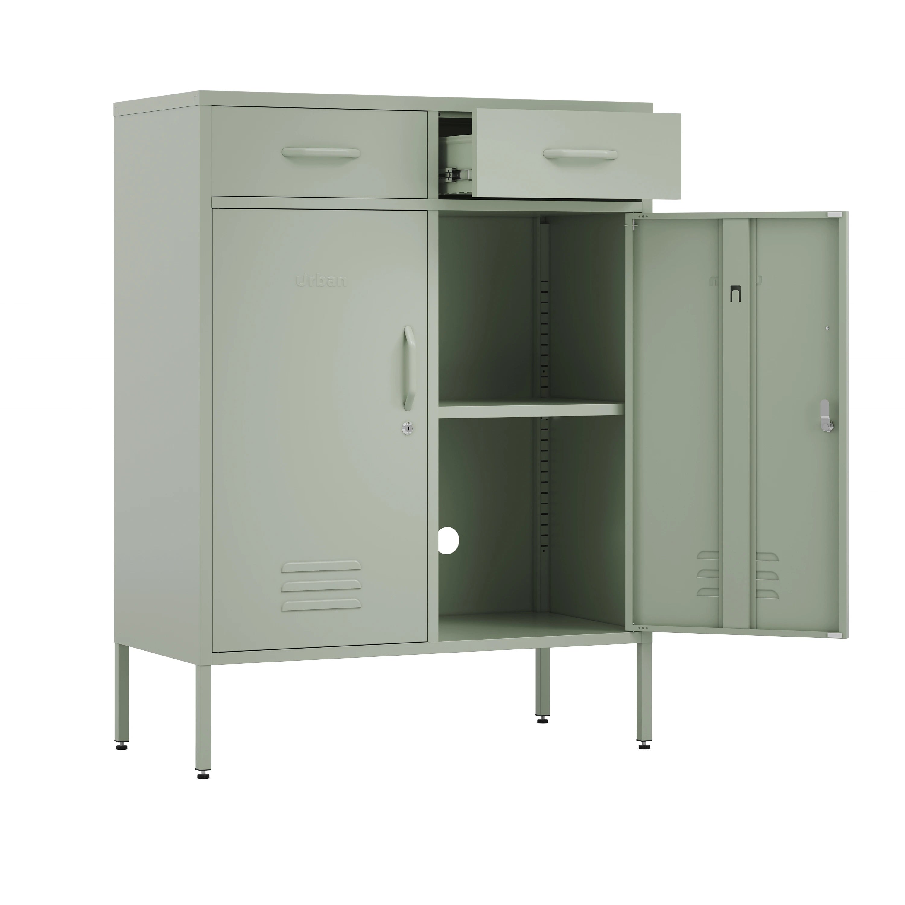 Metal storage locker with 2 doors and 2 drawers in sage green