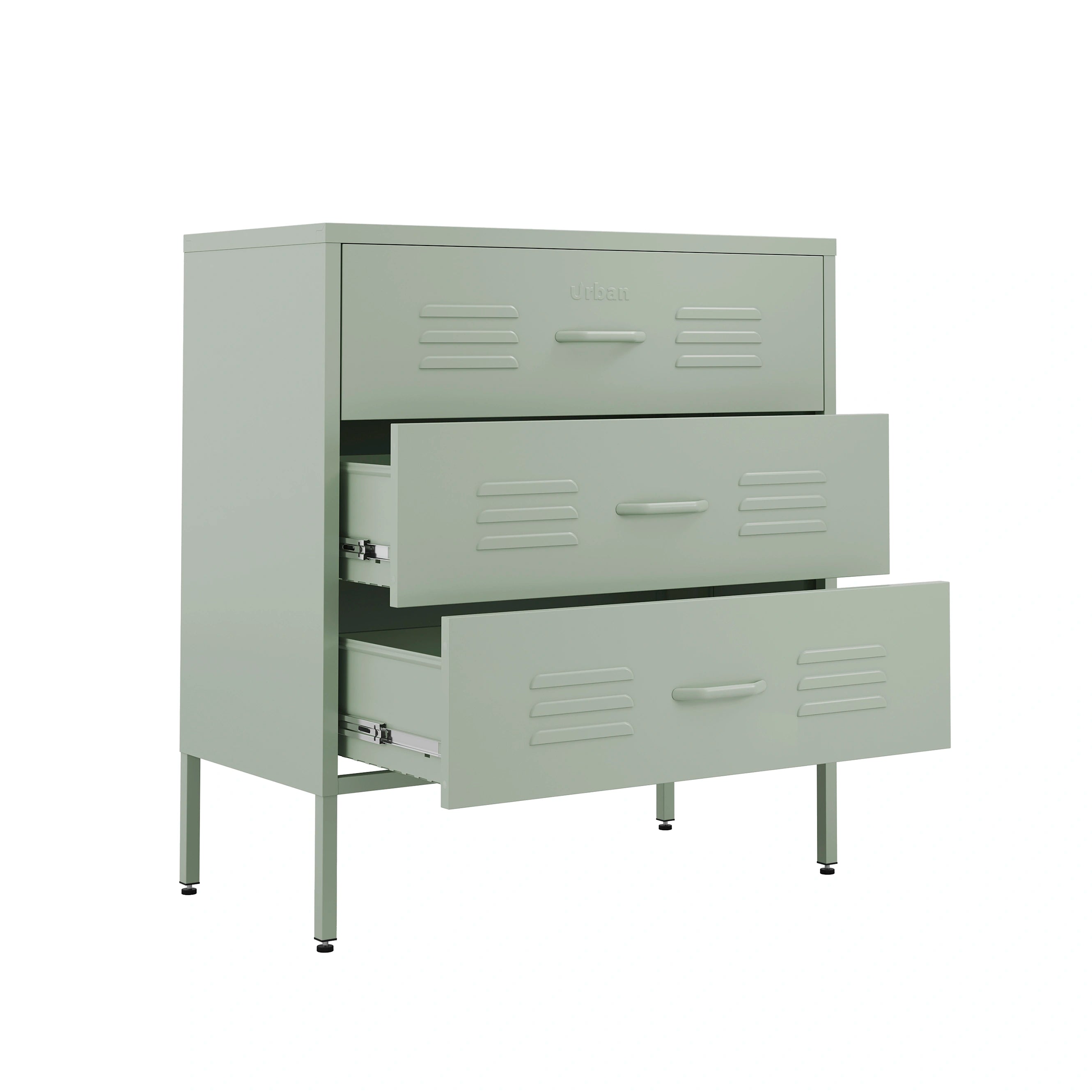 The Sage Green Lambeth locker is the perfect mix of practical storage and stylish design. This Sage Green locker has three smooth-gliding, metal, vented drawers which provide plenty of room for all your essentials, whether you're organising clothes, accessories, or paperwork. The soft Sage Green colour adds a calming touch to any space, while features such as wall mounting holes and adjustable feet ensure flexibility and convenience. Whether used as a bedroom locker or office locker, the Sage Green Lambeth locker is a dependable storage option that looks great too.