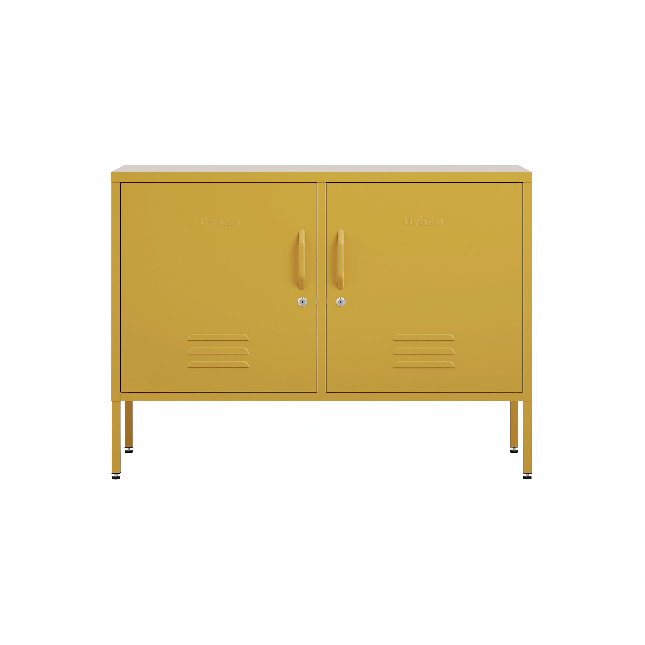 The Oxford, a wide, short 2 door metal locker in mustard.