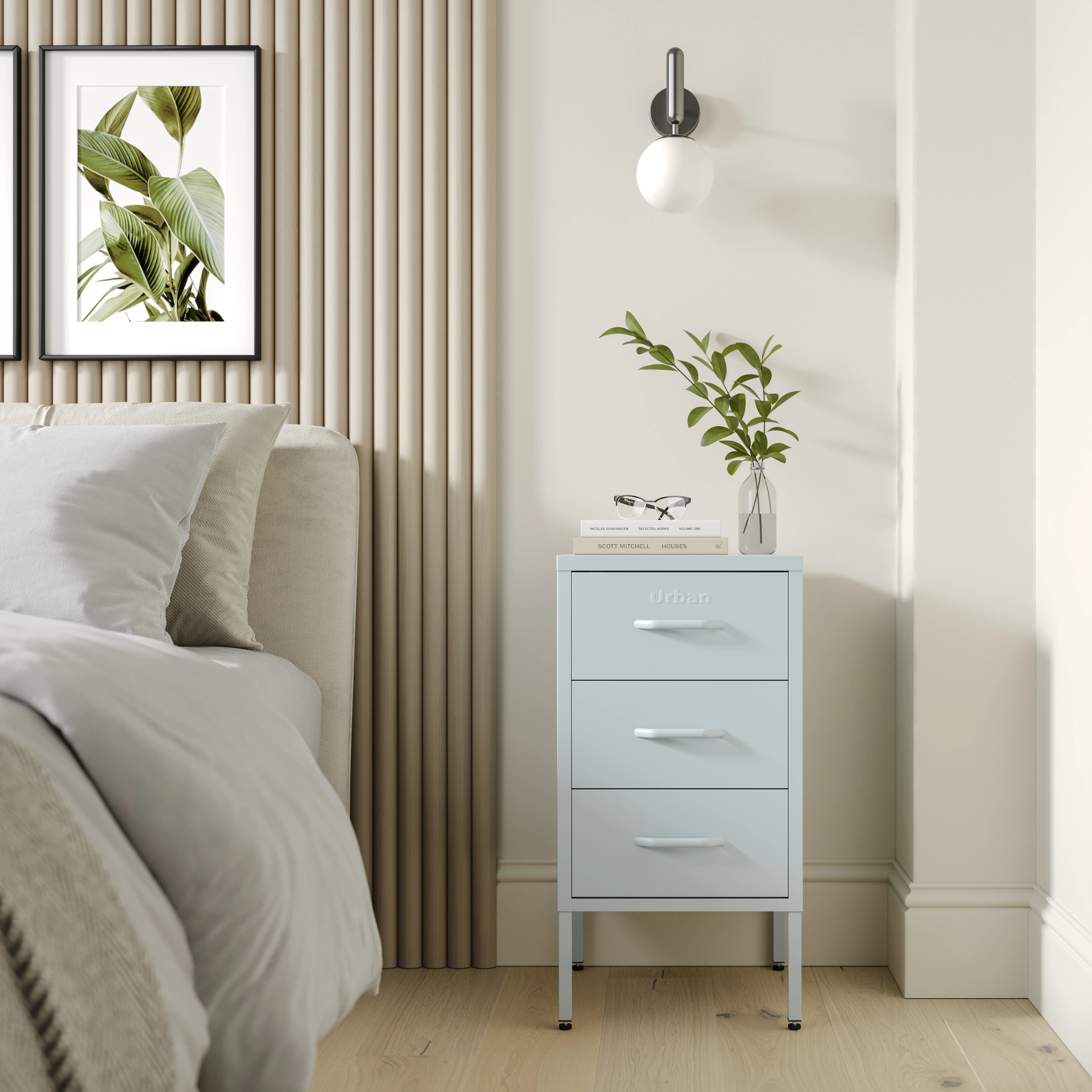 The Sky Blue Richmond metal drawer locker combines a fresh, pastel tone with practical storage. Perfect for offices, bedside use and more, this three-drawer locker offers convenient storage in any setting. Whether styled as a modern bedroom drawer locker or a sleek office storage unit, this sky blue locker adds a touch of charm to any space.