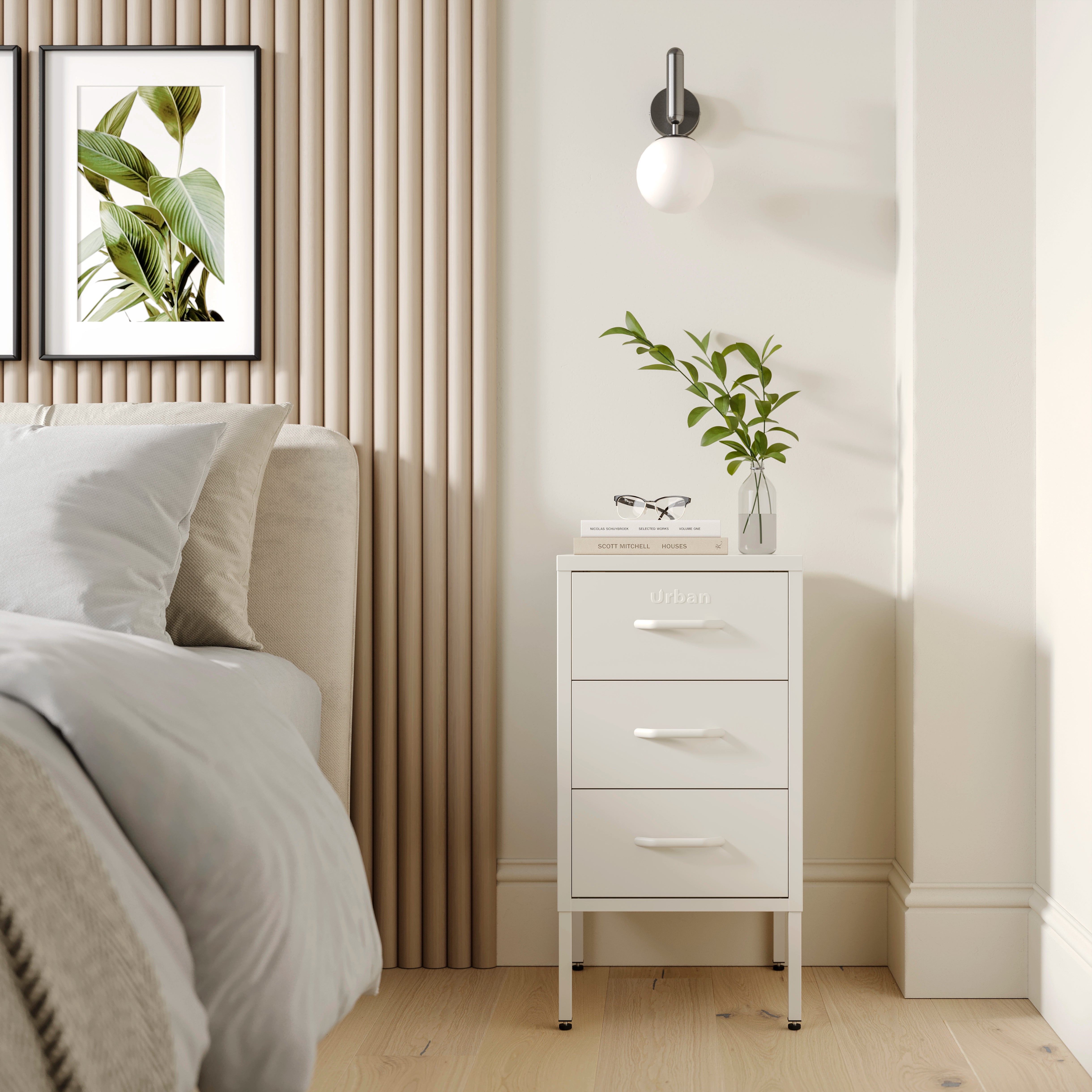 The Vanilla Richmond metal drawer locker combines a fresh, pastel tone with practical storage. Perfect for offices, bedside use and more, this three-drawer locker offers convenient storage in any setting. Whether styled as a modern bedroom drawer locker or a sleek office storage unit, this vanilla locker adds a touch of charm to any space.