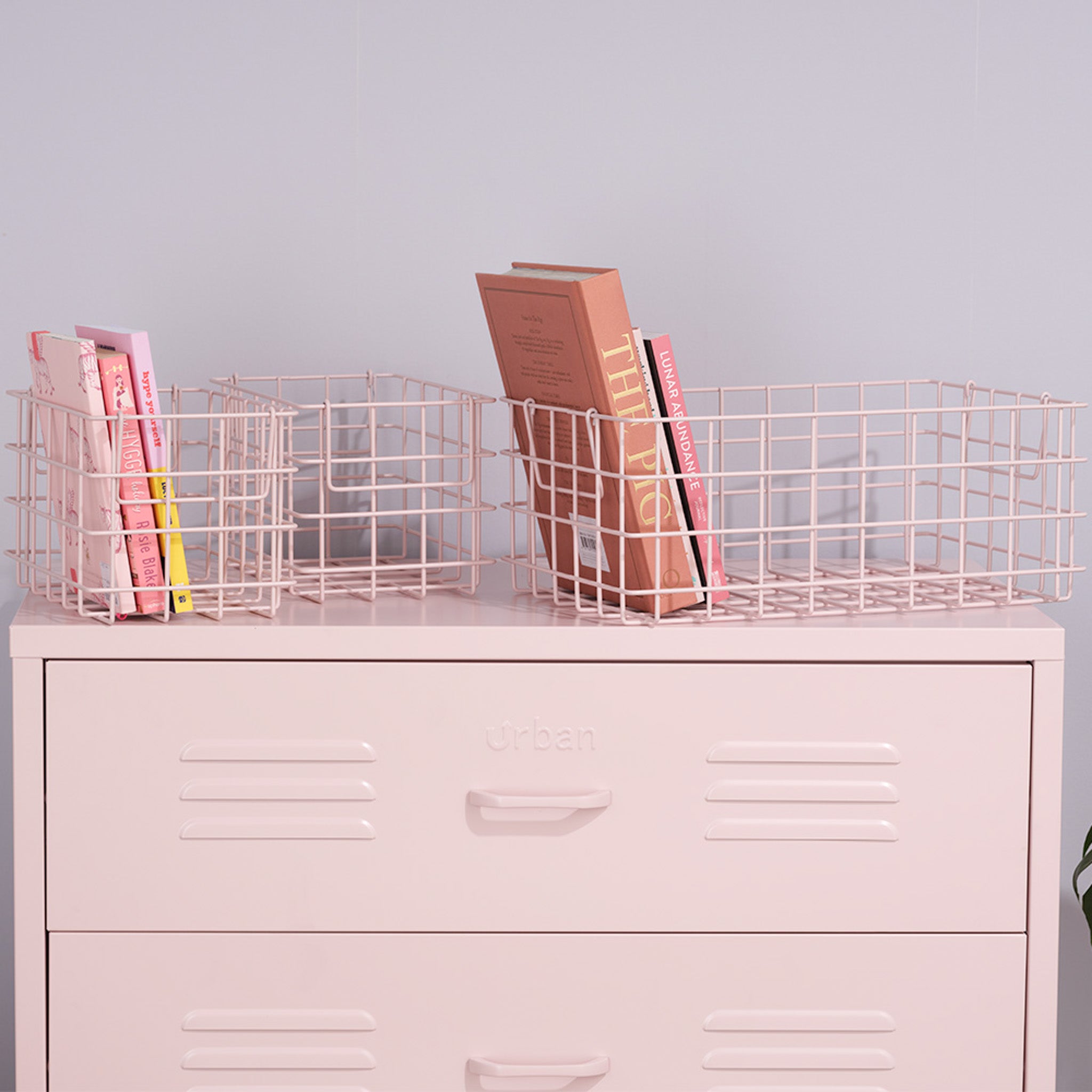 Onze Urban manden zijn gemaakt van duurzaam metaal en afgewerkt in lichtroze. Ze zijn een geweldige aanvulling op het organiseren en stylen van onze opbergkasten of lades. De set van 3 manden bestaat uit één grote en twee middelgrote manden.